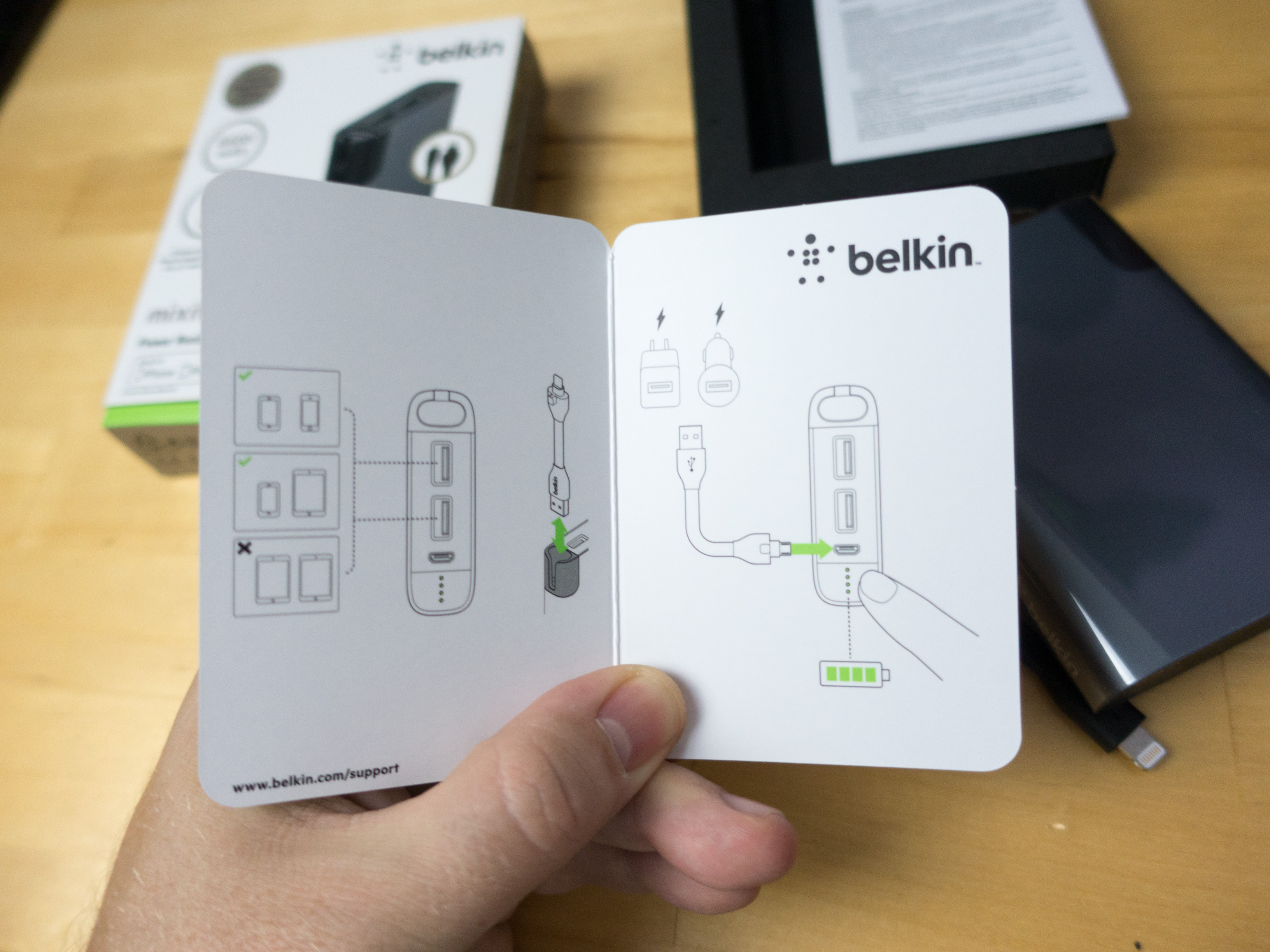 Le packaging est soigné, la boite est compacte, la batterie est correctement protégée et Belkin livre même un petit manuel explicatif.