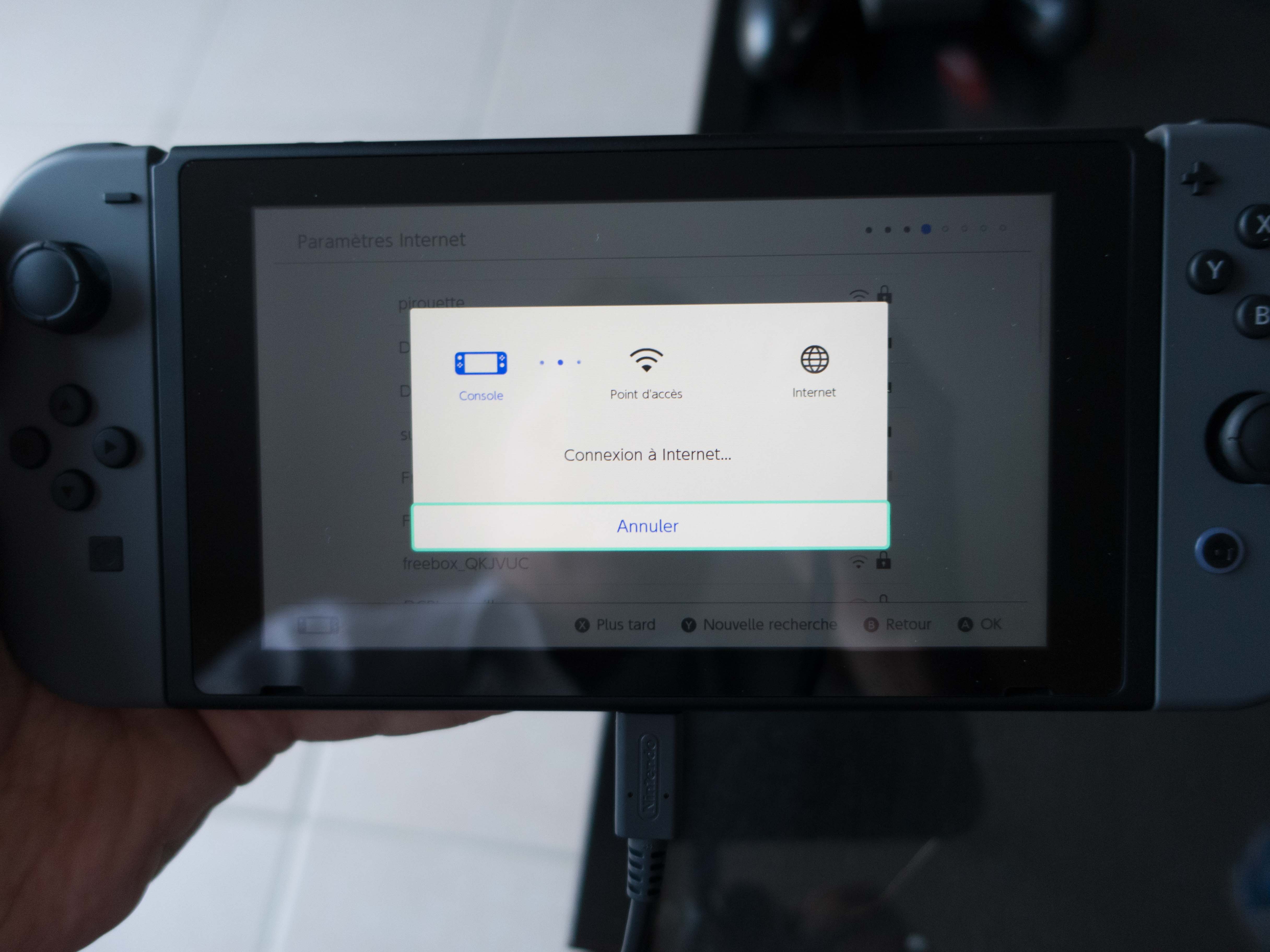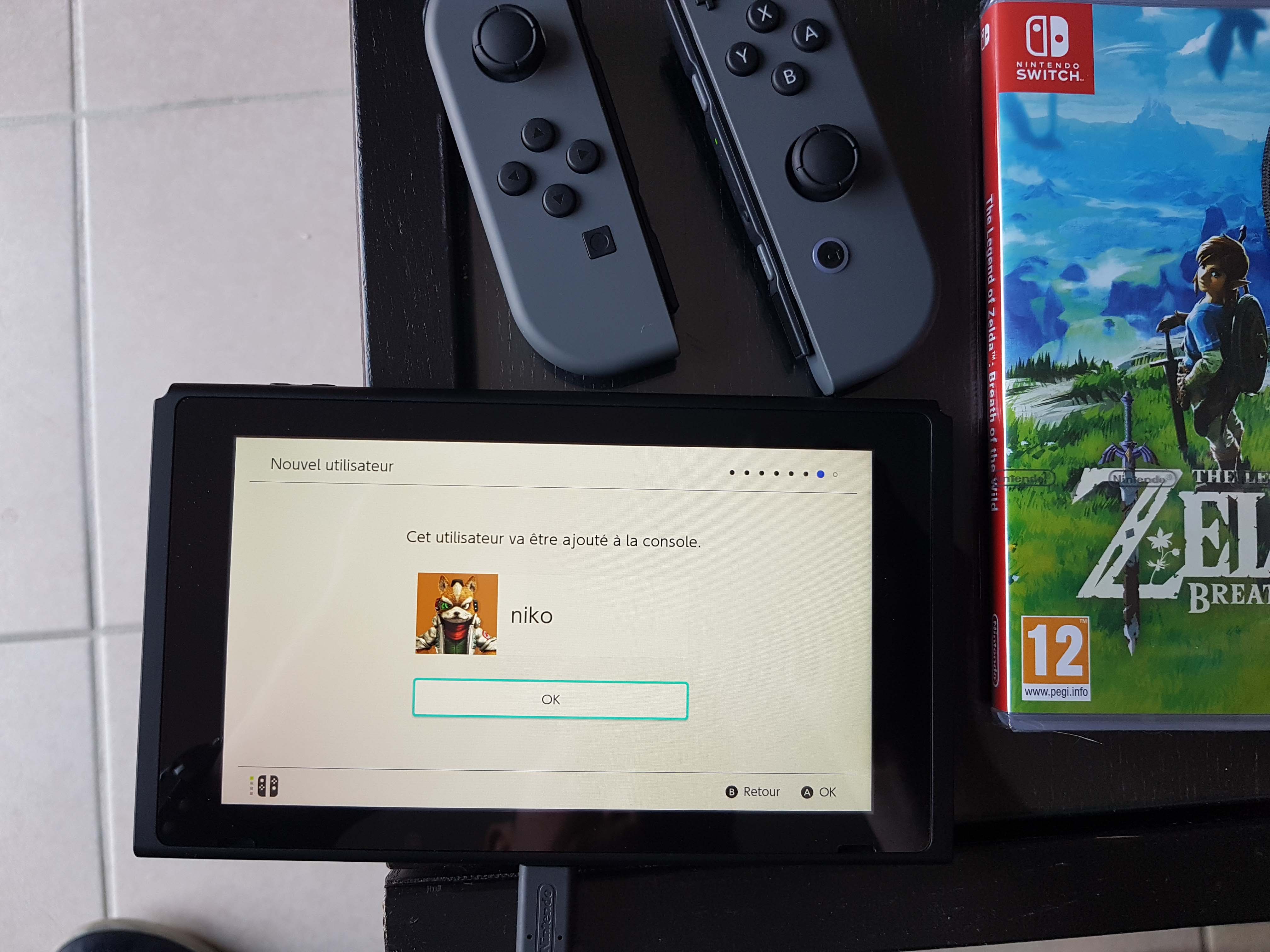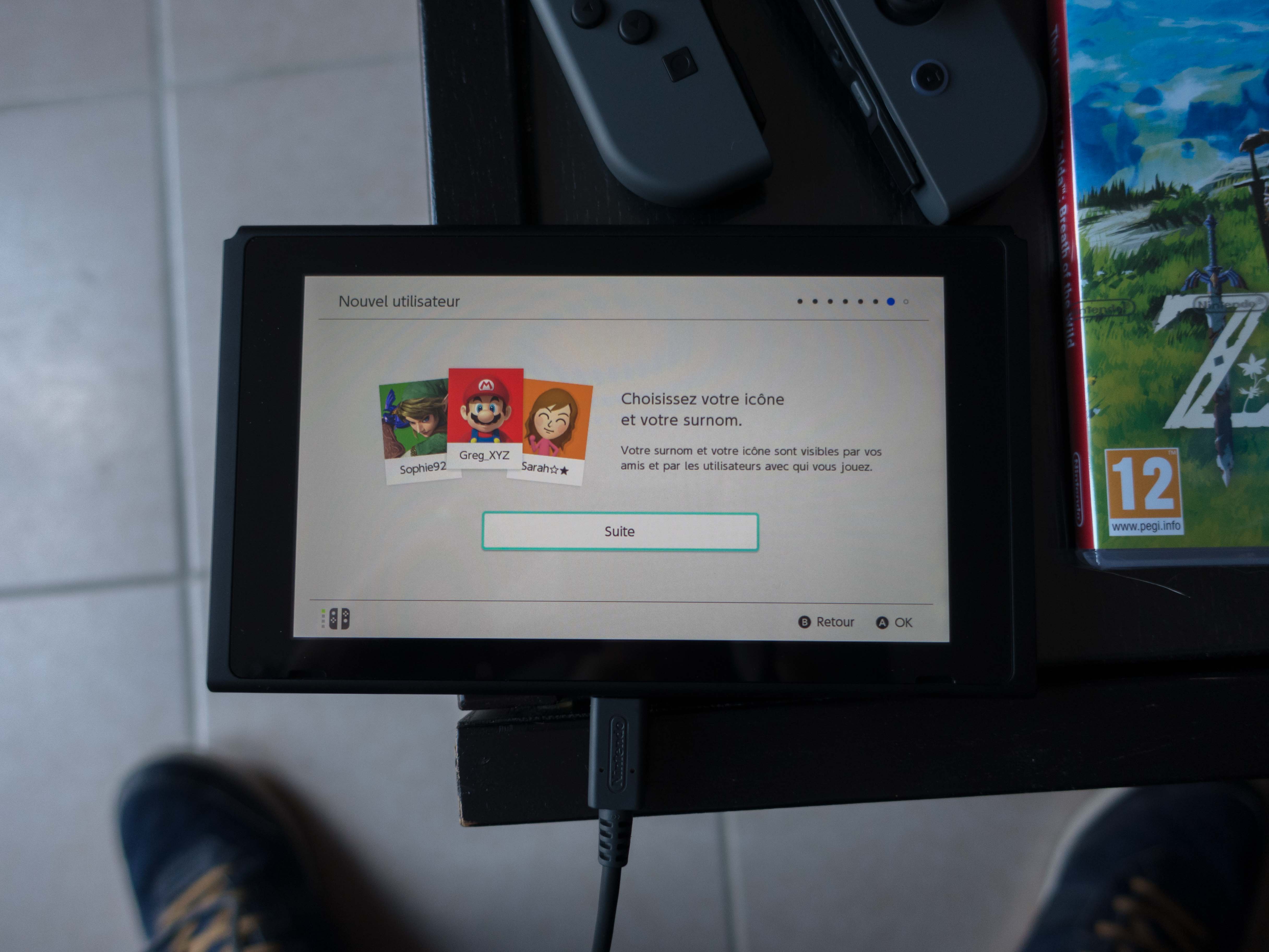 Premier allumage de la console, on configure ça en quelques minutes (choix de langue, wifi, mise à jour) et l’ergonomie est très bonne: Nintendo nous guide pas à pas, nous explique comment marchent les accessoires, comme allumer tout ça. On est guidé du début jusqu’à la fin.