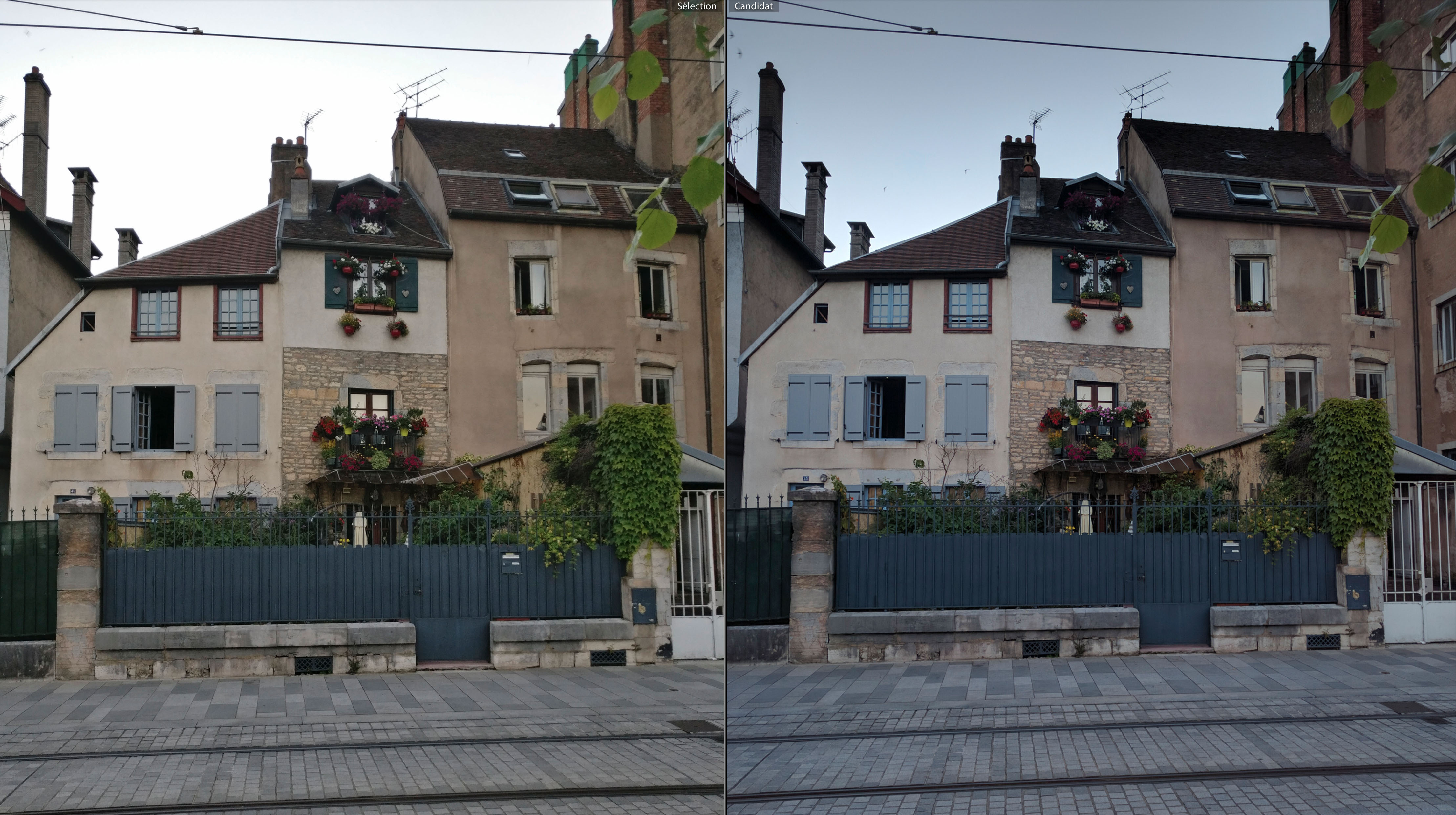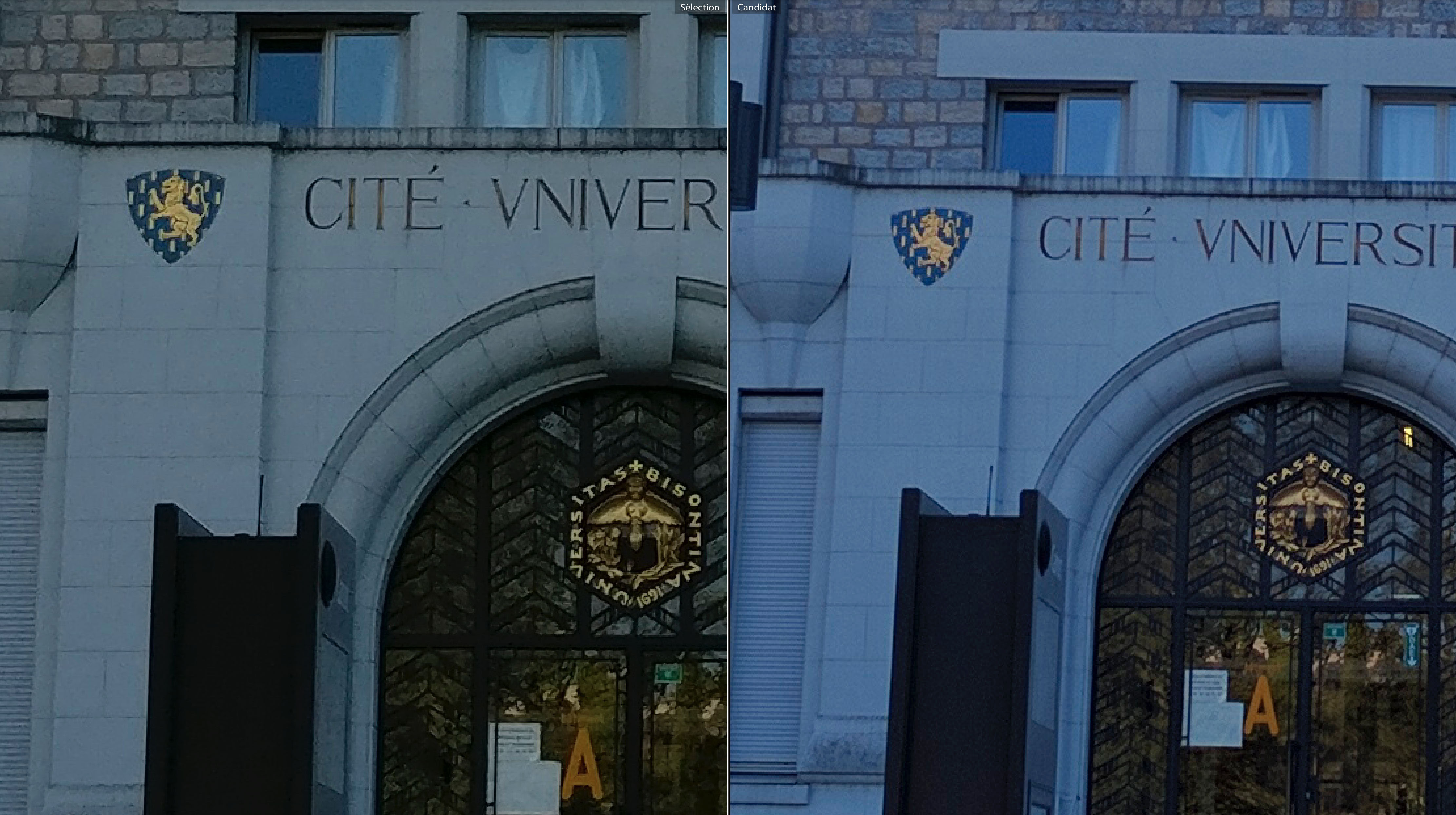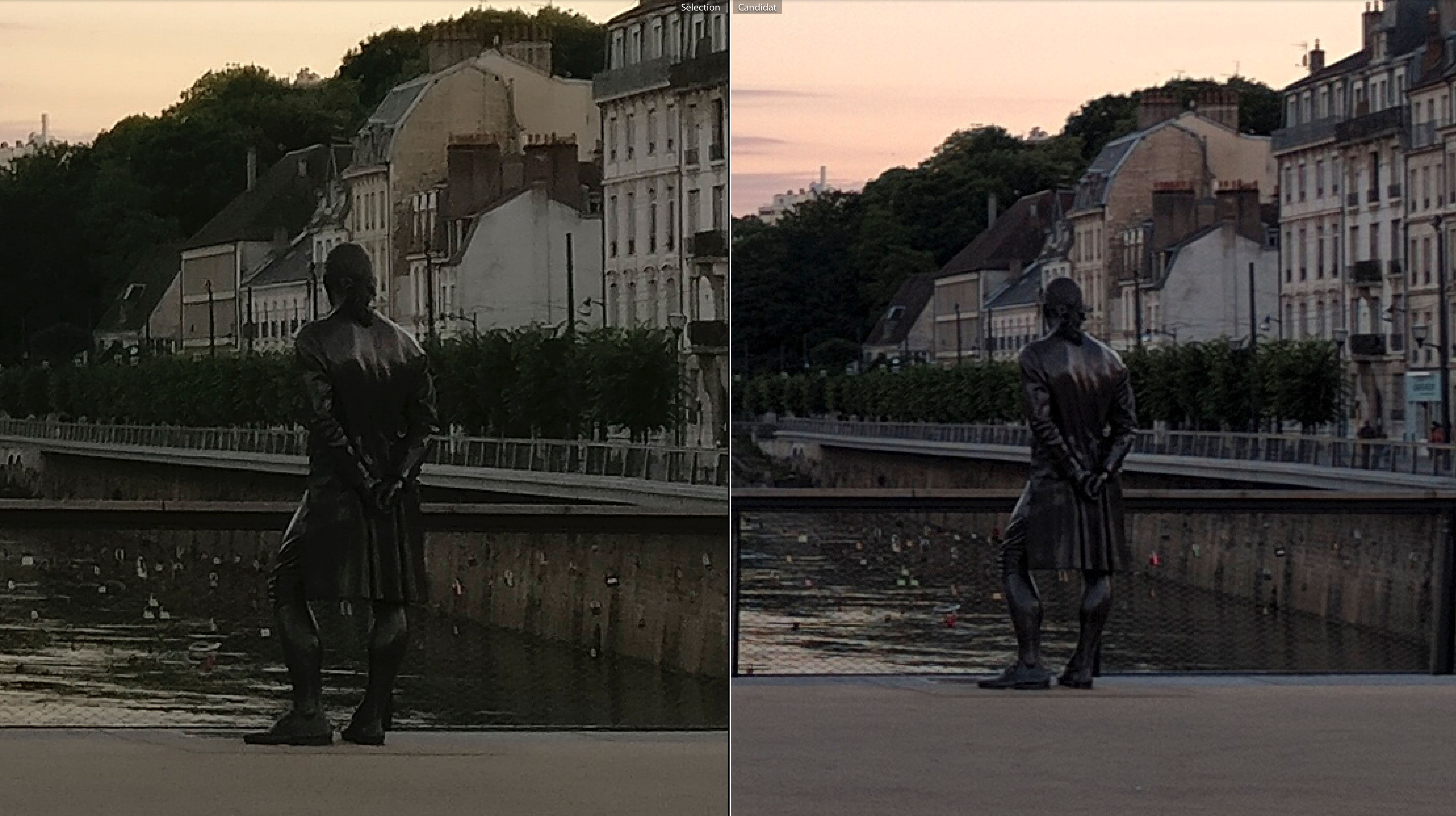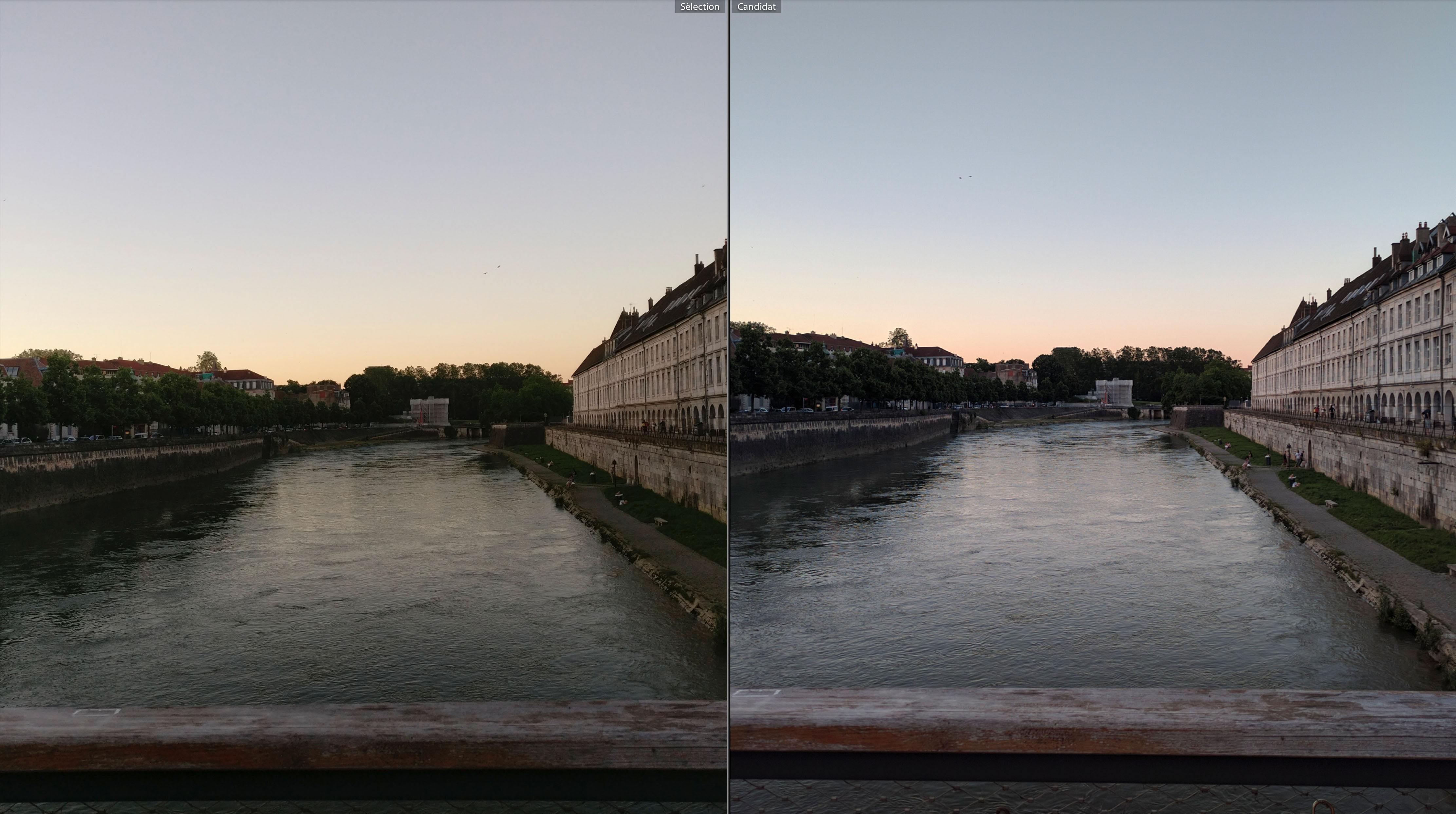 Une soirée passée à Besançon m’a permis de prendre ces clichés ; ils ont été pris en fin d’après midi & en soirée, du coup j’ai des clichés en plein soleil, en contre jour ou par faible luminosité. Dans toutes les photos suivantes, vous trouverez une version OnePlus 3 à gauche et une version Nexus 6P à droite ; l’ensemble des photos ont été prises avec le HDR auto.