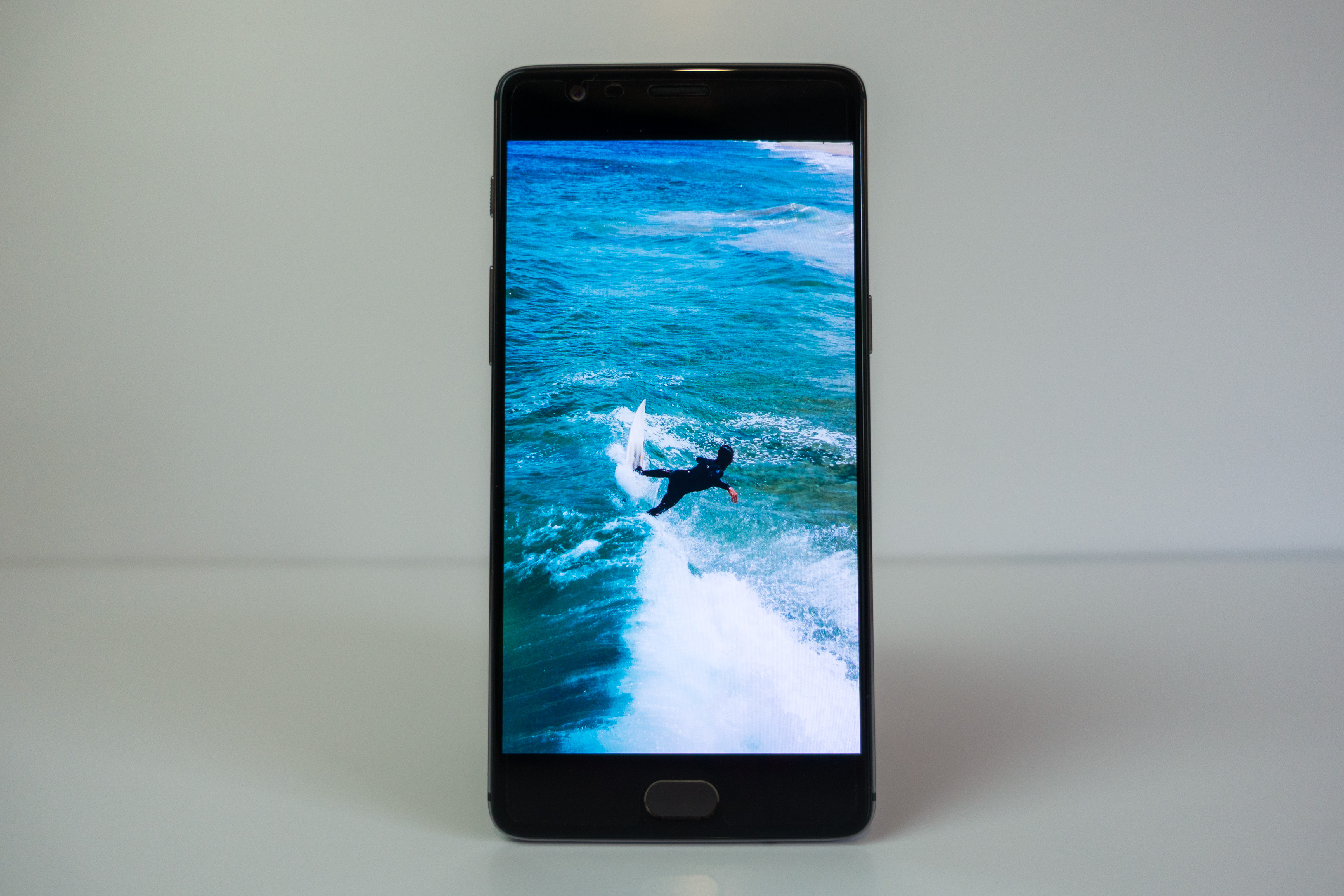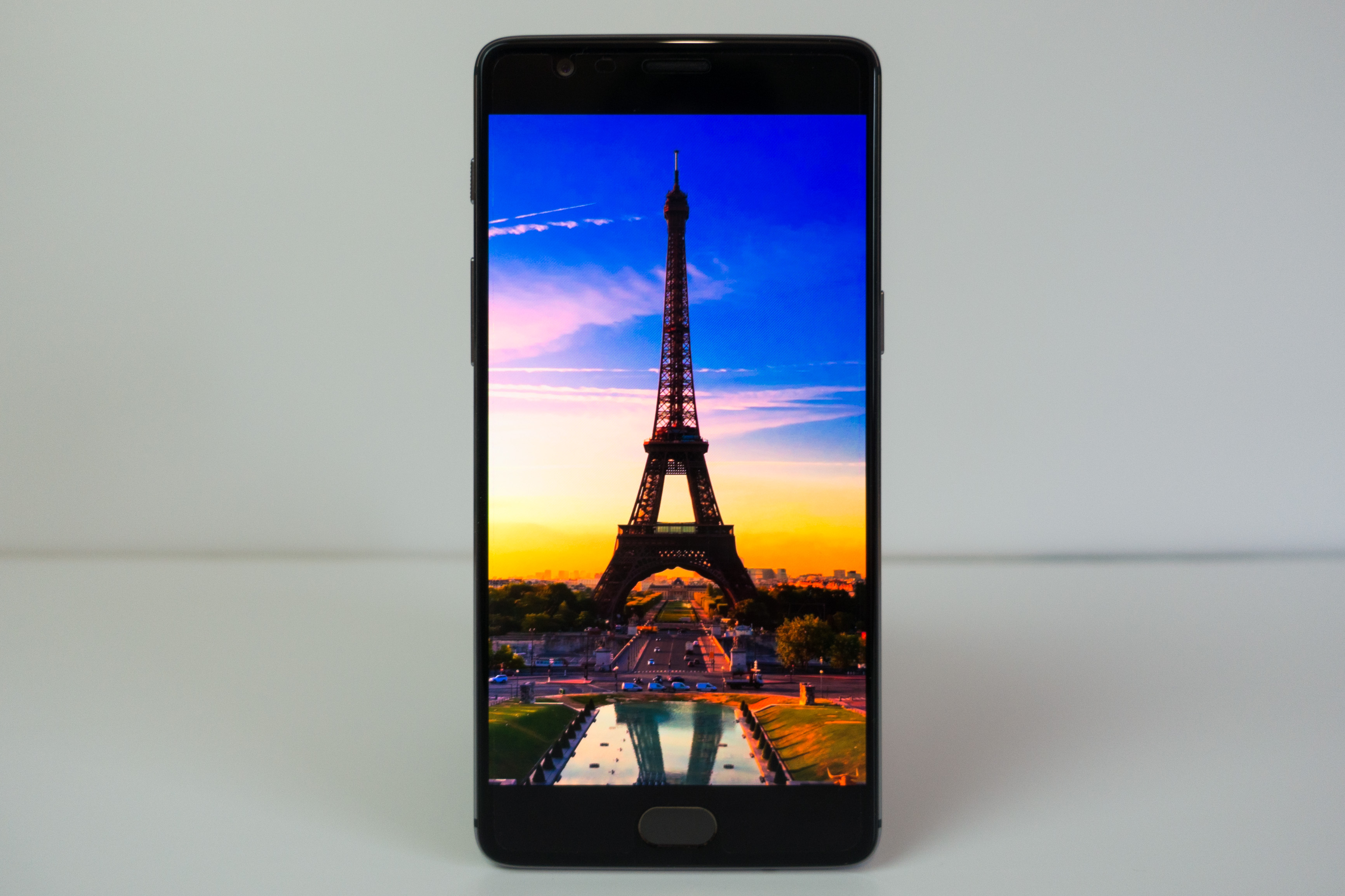 OnePlus a fait un (bon) choix encore cette année : ils restent sur un écran 5.5 » en full HD. Pour moi c’est un bon choix car cette taille d’écran + résolution est vraiment un très bon compromis: pas trop consommateur d’énergie (comme le sont les écrans quadHD) mais largement suffisant pour être précis dans la lecture de pages webs ou le matage de photos de vacances. Pour moi, les résolutions au dessus du full HD sur des écrans de ce type ne sont pas utiles sur smartphone, sauf peut être pour faire un peu de VR (mais qui reste clairement gadget sur un smartphone).