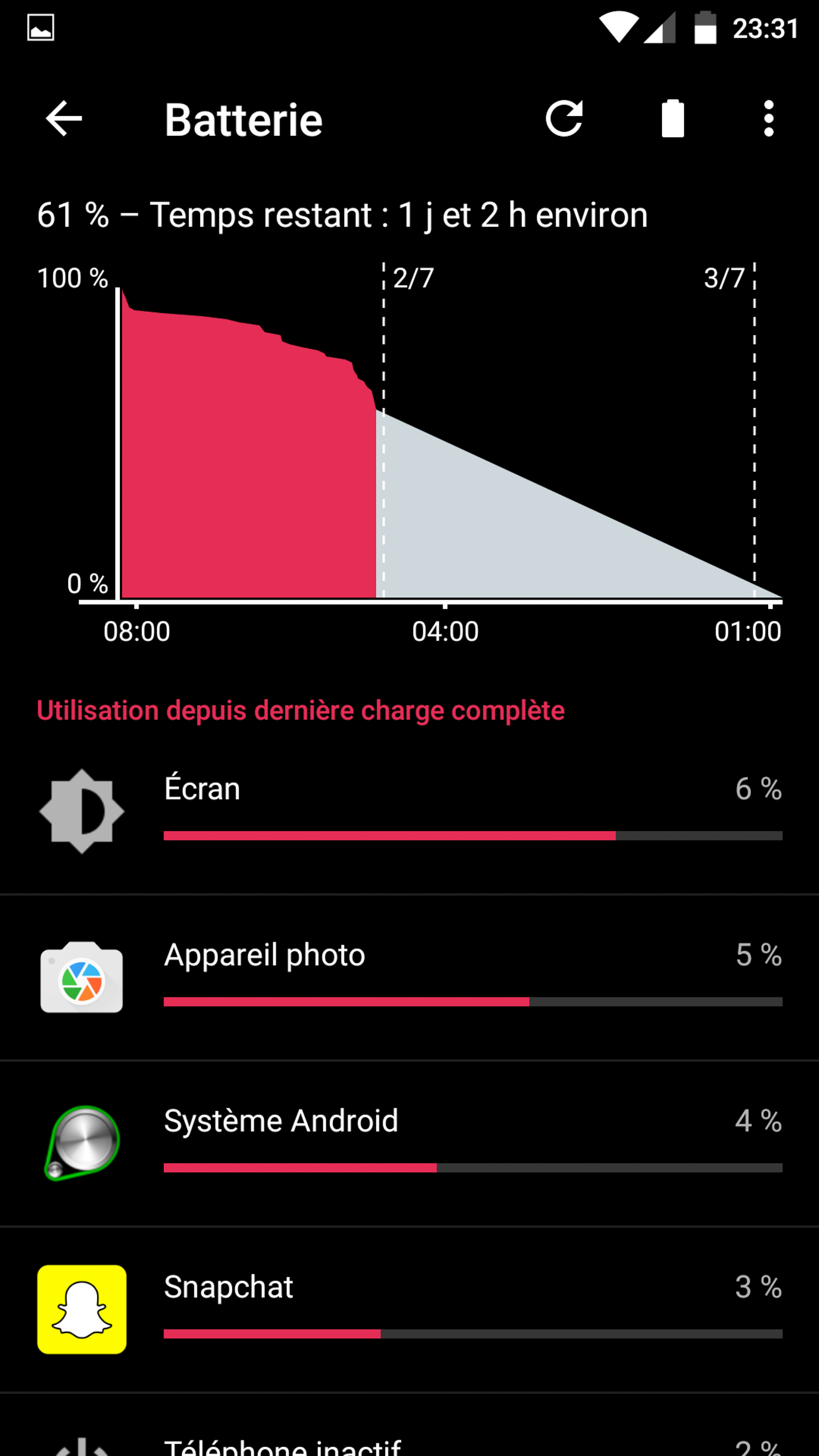 La batterie du N6P est toujours en forme, il m’arrive de faire de grosses journées (en wifi) avec sans problème. En dehors de chez moi (4g) ça pompe plus et je recharge souvent en fin de journée… Mais il faut savoir que je suis un gros utilisateur de mon téléphone !