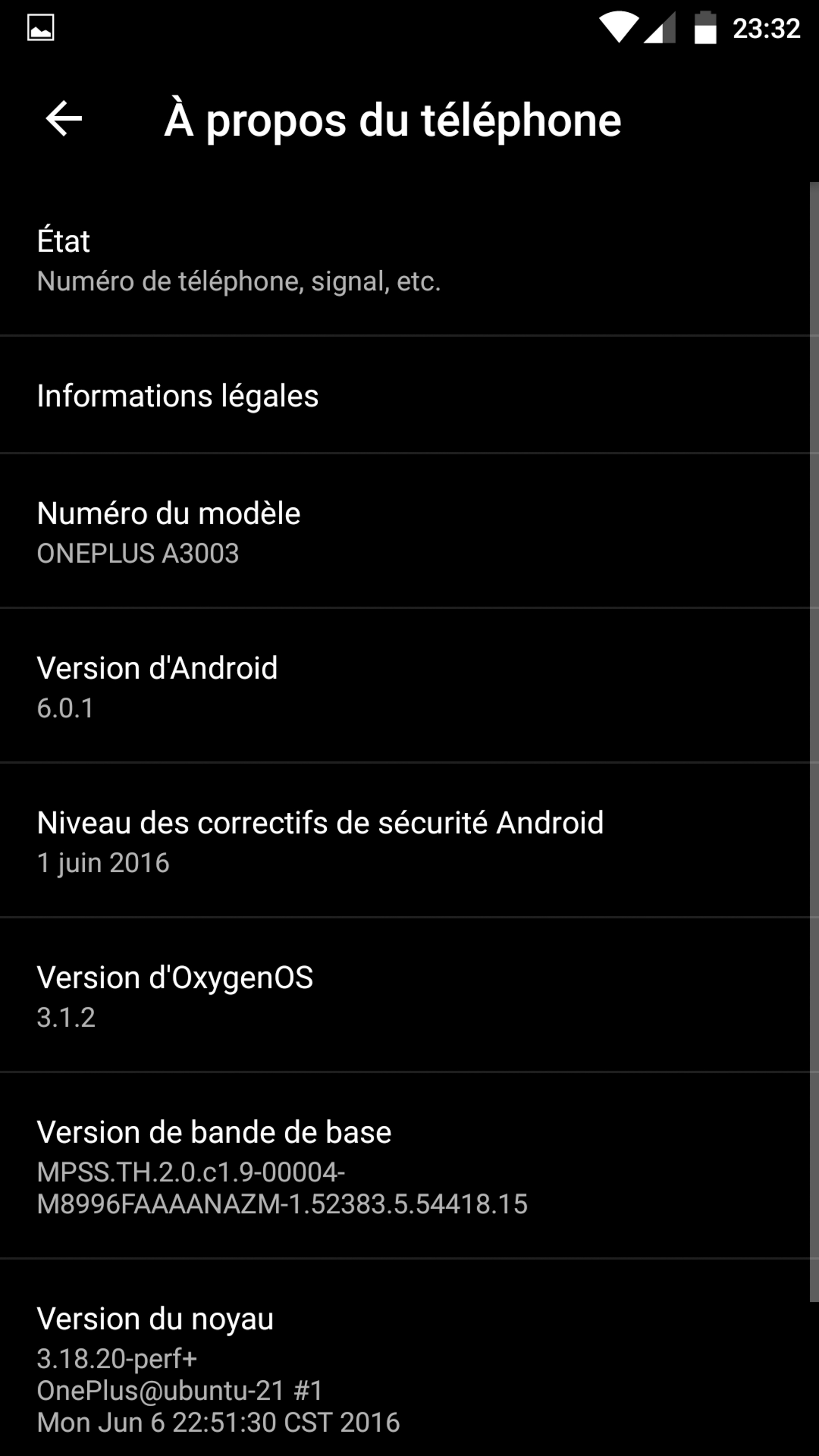 - Android Marshmallow 6.0.1 et ROM Oxygen OS (très proche du stock)