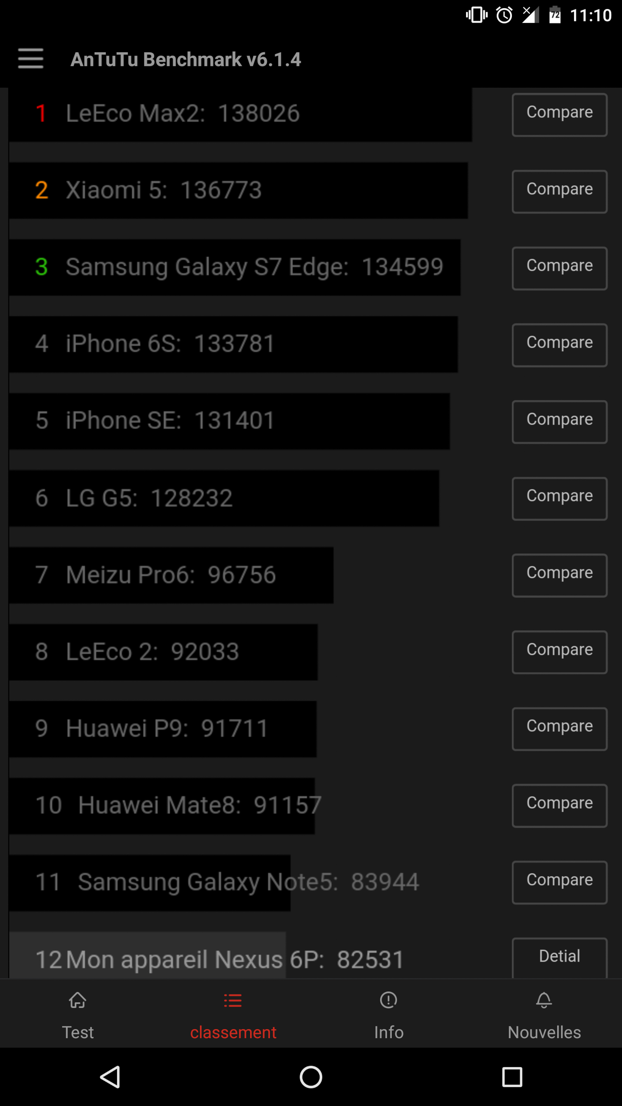 Coté performance, le processeur Snapdragon 820 est une bombe. Une grosse bombe qui sait faire tout ce que vous voulez, vite et bien. Les benchmarks sont sans appel, vous avez ici un smartphone au top de la gamme Android. Je me suis amusé à le comparer au Nexus 6P qui est pour moi déjà très rapide, et les chiffres sont assez parlants (même si dans les faits, ça ne change pas grand chose, les 2 expériences sont aussi fluides).