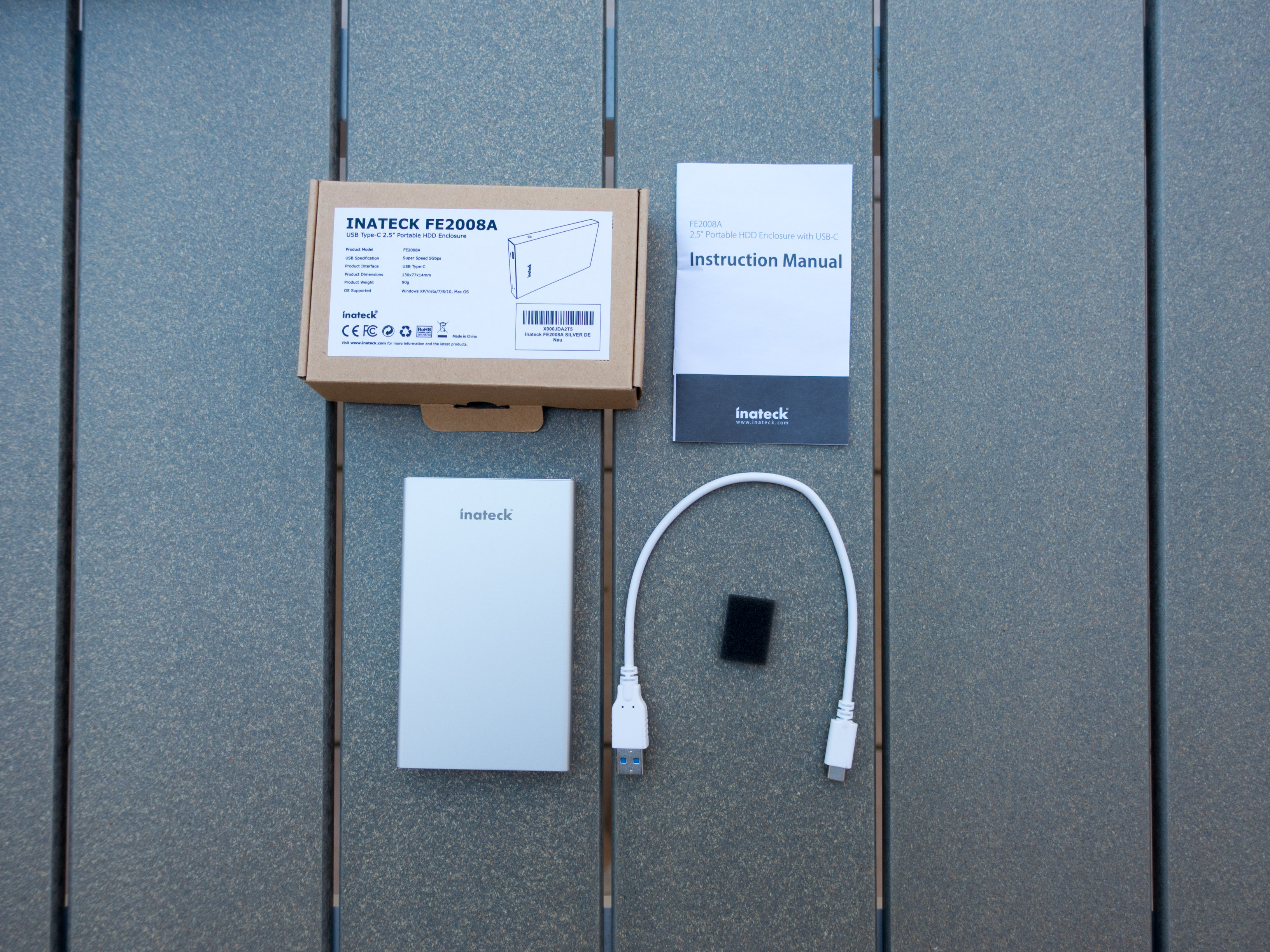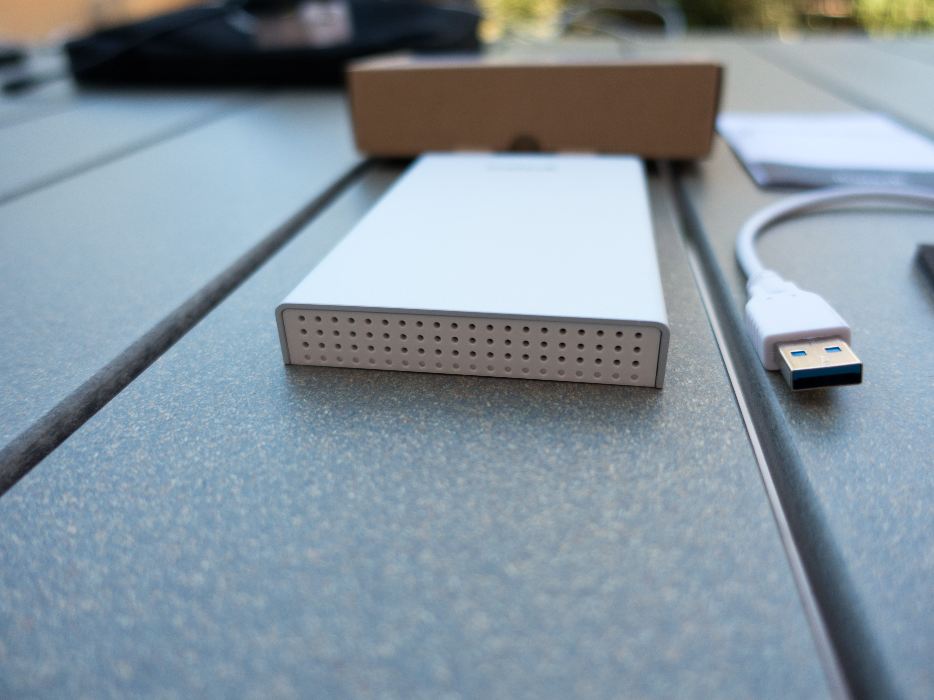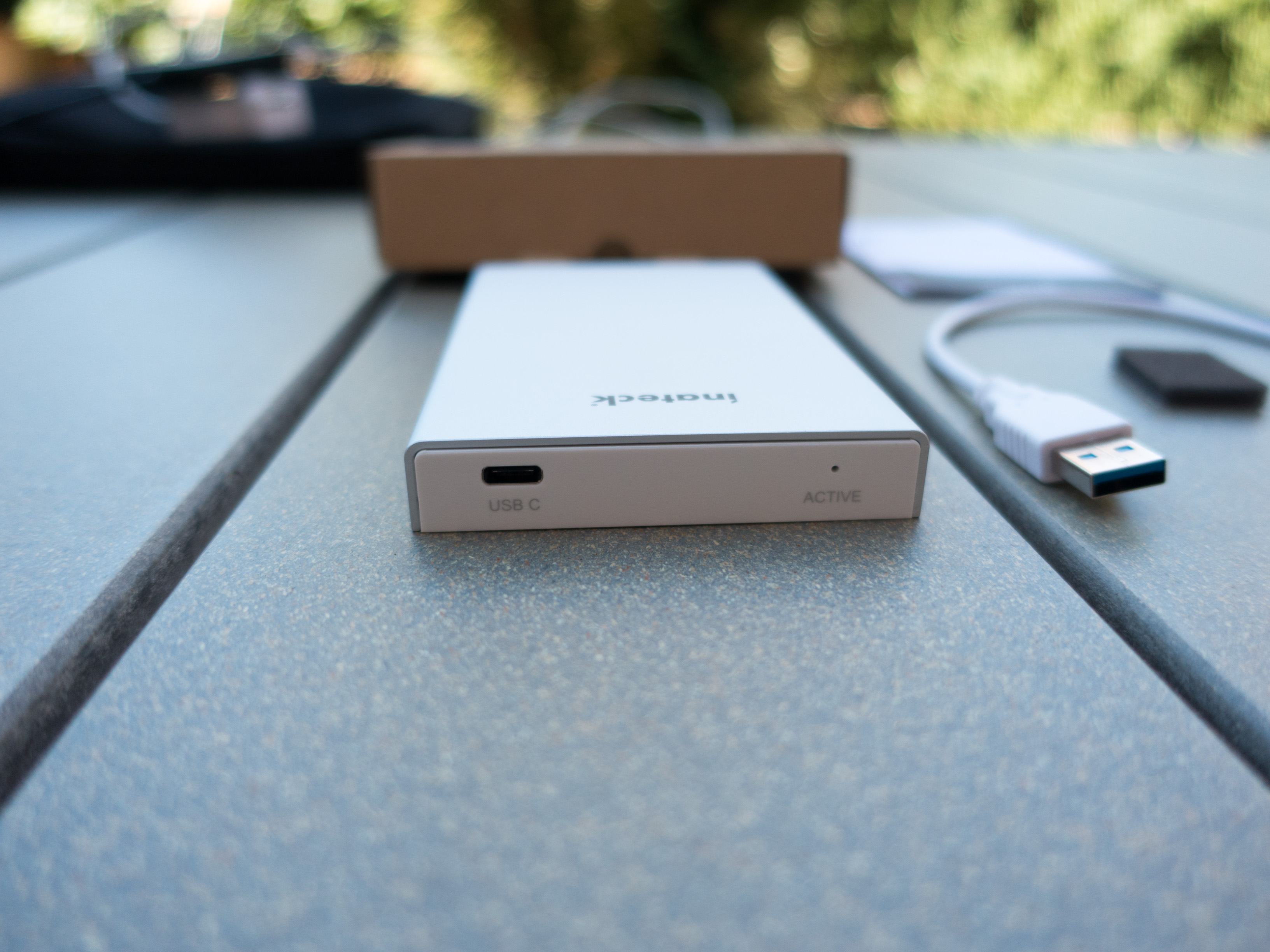 J’ai donc cherché un nouveau boitier qui permettrai d’avoir des débit plus importants… et je l’ai trouvé: il s’agit d’un boitier vendu par Inateck (un peu plus cher que le Aukey), en aluminium et plastique et qui est lui aussi USB type C.