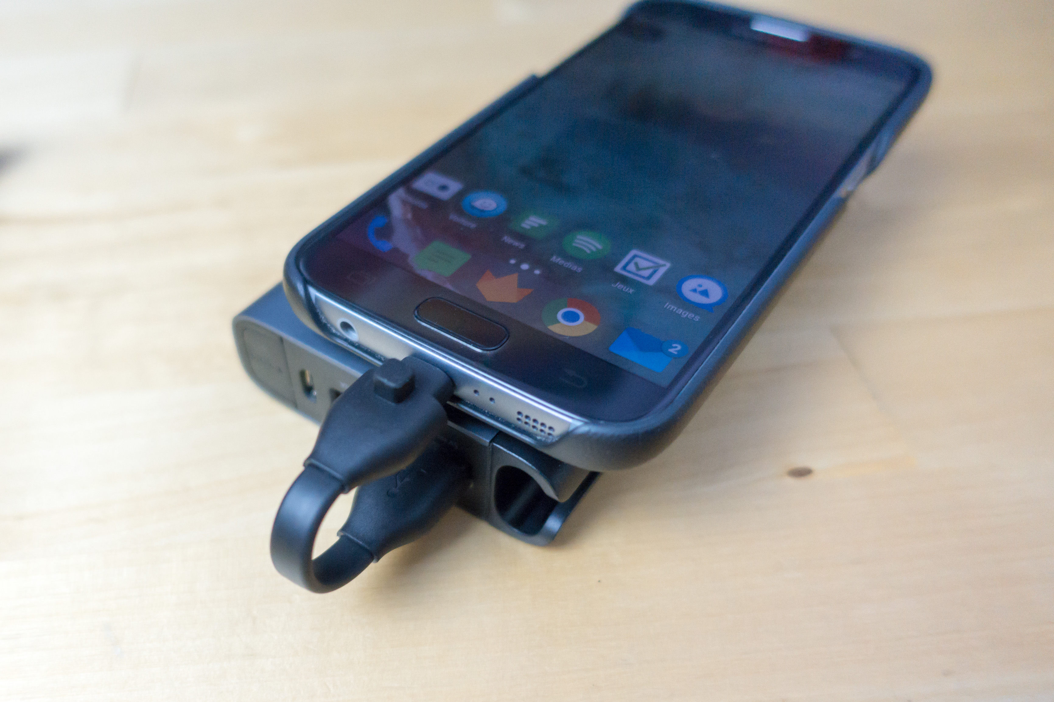 Ce câble est extrêmement court (normal, pour pouvoir être intégré dans la batterie…) mais flexible. Il sera donc possible de replier la batterie sous le téléphone lors de la charge.