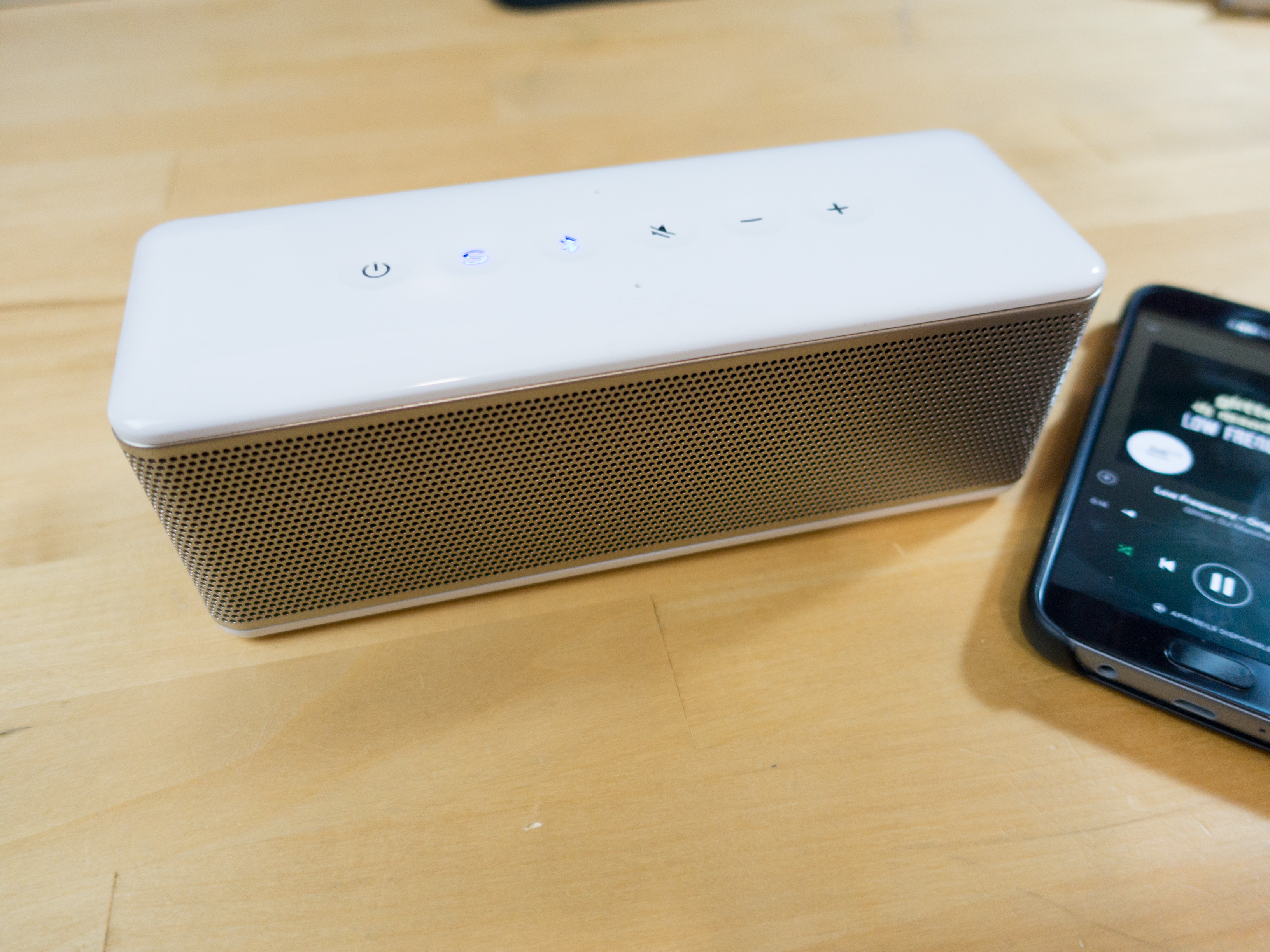 J’ai passé quelques jours à écouter cette enceinte en permanence. Après quelques jours de rodage, le son m’est apparu comme très bon. Il est bien plus clair, puissant et précis dans les basses et les aigus que d’autres enceintes que je possède. Sa distorsion à haut volume est incroyable (ça crache pas, le son reste clair & précis) mais j’ai souvent poussé son volume au maximum ; j’aurai peut être aimé avoir un volume encore plus élevé pour sonoriser de grands espaces (une pièce normale est largement sonorisée par cette enceinte bluetooth Riva S). Cette enceinte s’en sort donc très bien sur les aigus & médiums, et les basses sont aussi bien présentes malgré la petite taille de cette Riva S. En comparaison, je l’ai trouvé plus précise que mes enceintes Anker (ce n’est pas le même niveau de finition, de qualité de prix évidemment) et assez proche de mon UE Boom 2. Cette Riva S est cependant supérieure quand il s’agit de restituer correctement les basses et propose par contre un son surround moins large et moins puissant. Il sera donc plutôt conseillé de prendre une UE Boom 2 pour sonoriser une pièce pour une soirée, mais cette enceinte bluetooth Riva S pour une écoute musicale au calme.