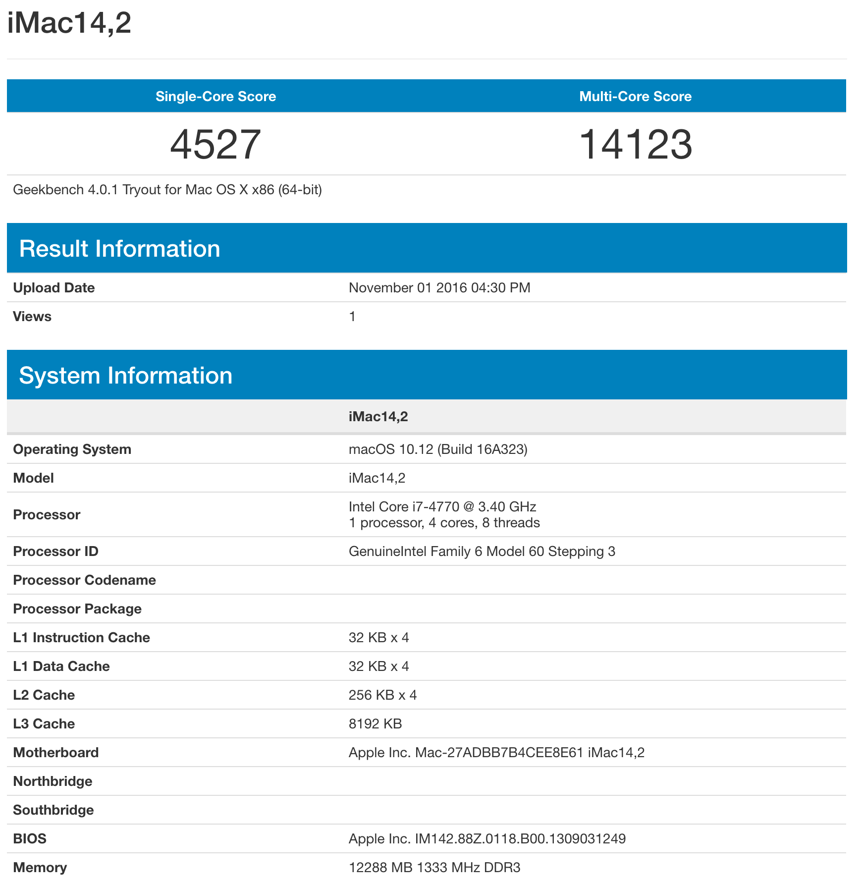 Voici ce que donnent le benchmark Geekbench et le panneau de présentation de mon ordinateur, une fois que j’ai fait la configuration complète du Macintosh.