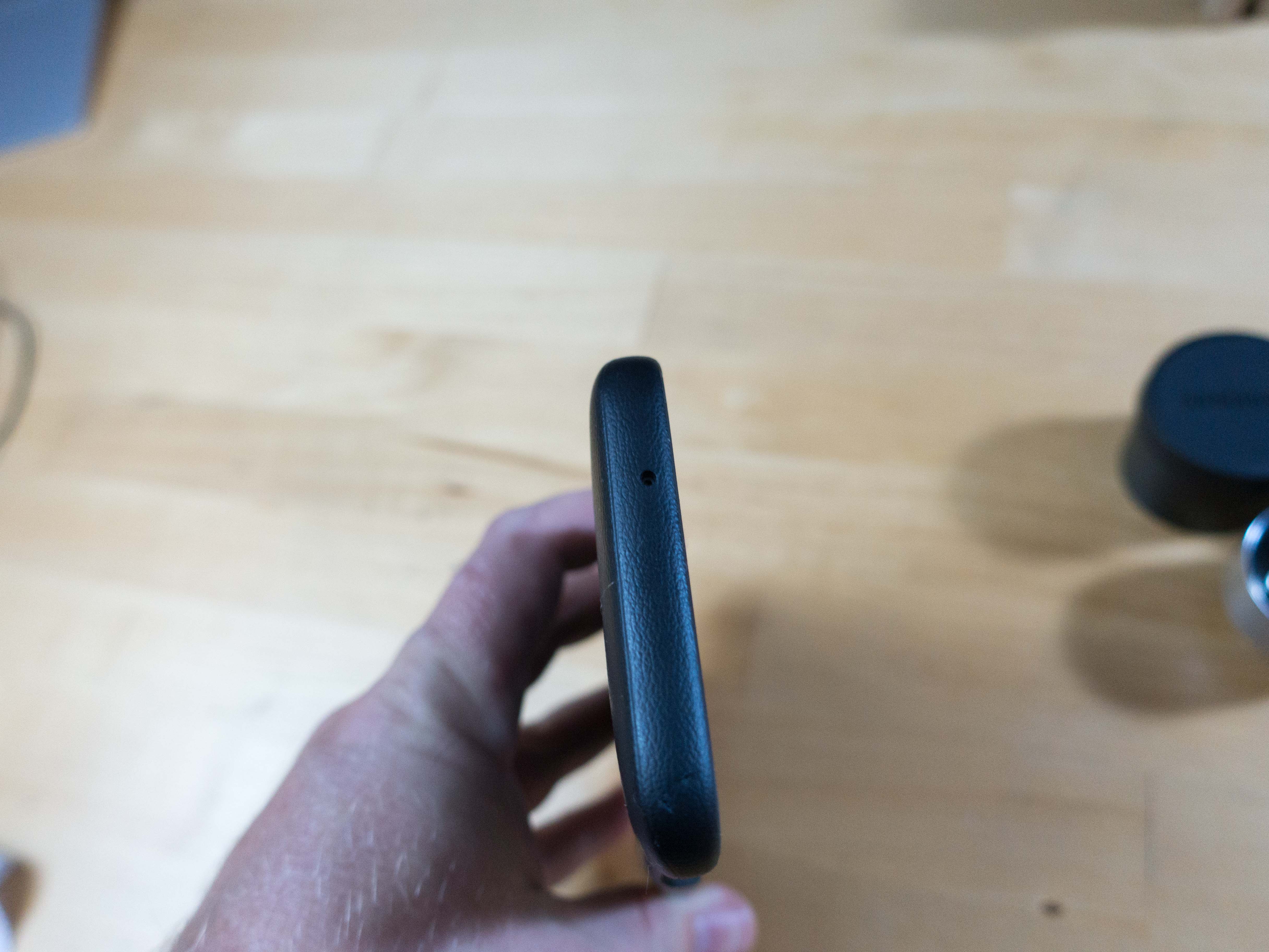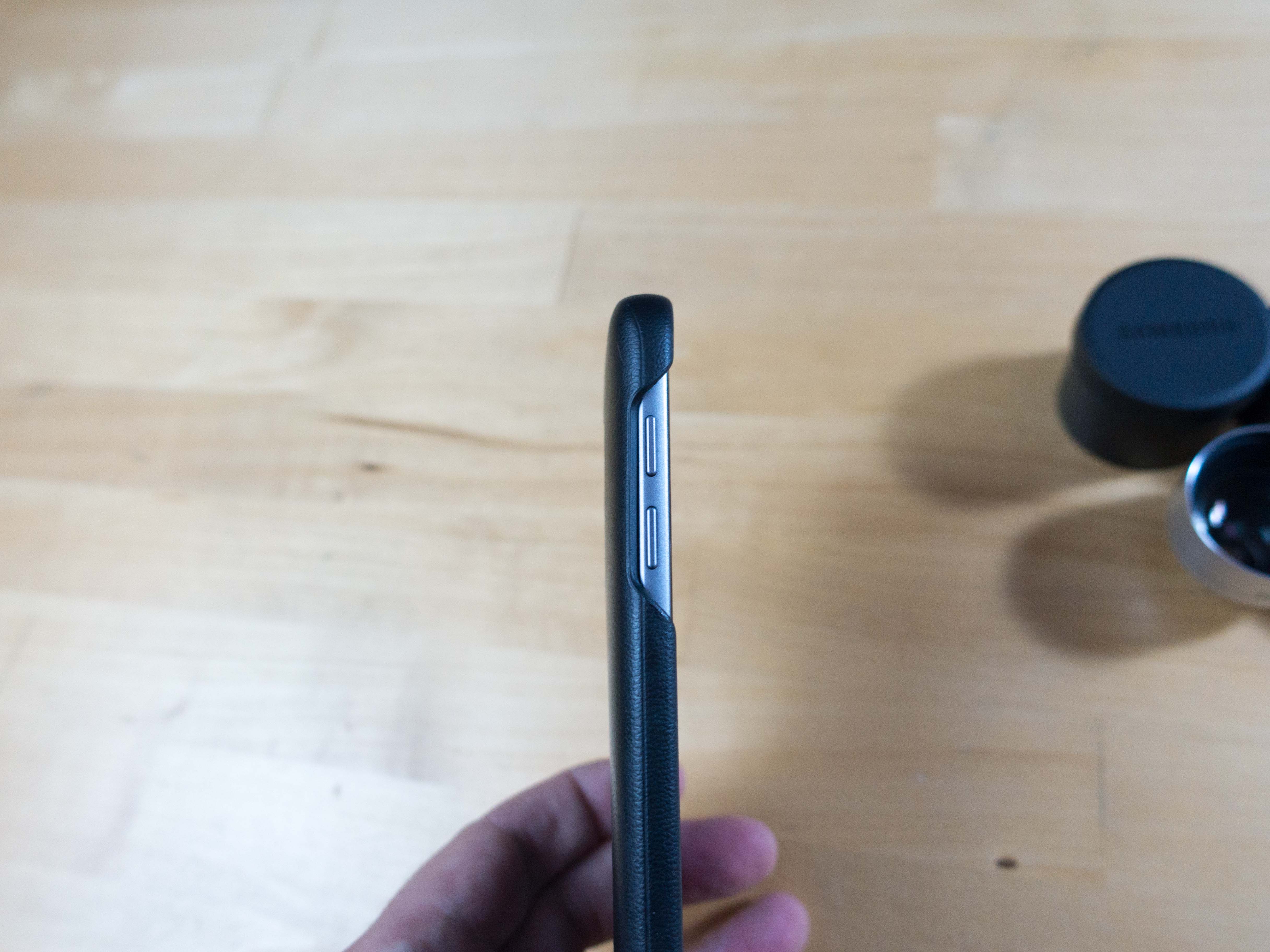 La coque est d’une très grande qualité. Lorsqu’on la touche pour la première fois, ce qui marque, c’est que le cuir fait « vrai », c’est chaud, chaleureux et anti-dérapant. La prise en main sera donc très bonne. Cette coque est très fine, très très très bien ajustée au téléphone et il se sortira pas par mégarde de sa coque (c’est presque difficile même de l’enlever). Autour de l’appareil photo, on remarque un petit pas de vis, qui permettra de viser les objectifs du ce Lens Cover pour Galaxy S7.