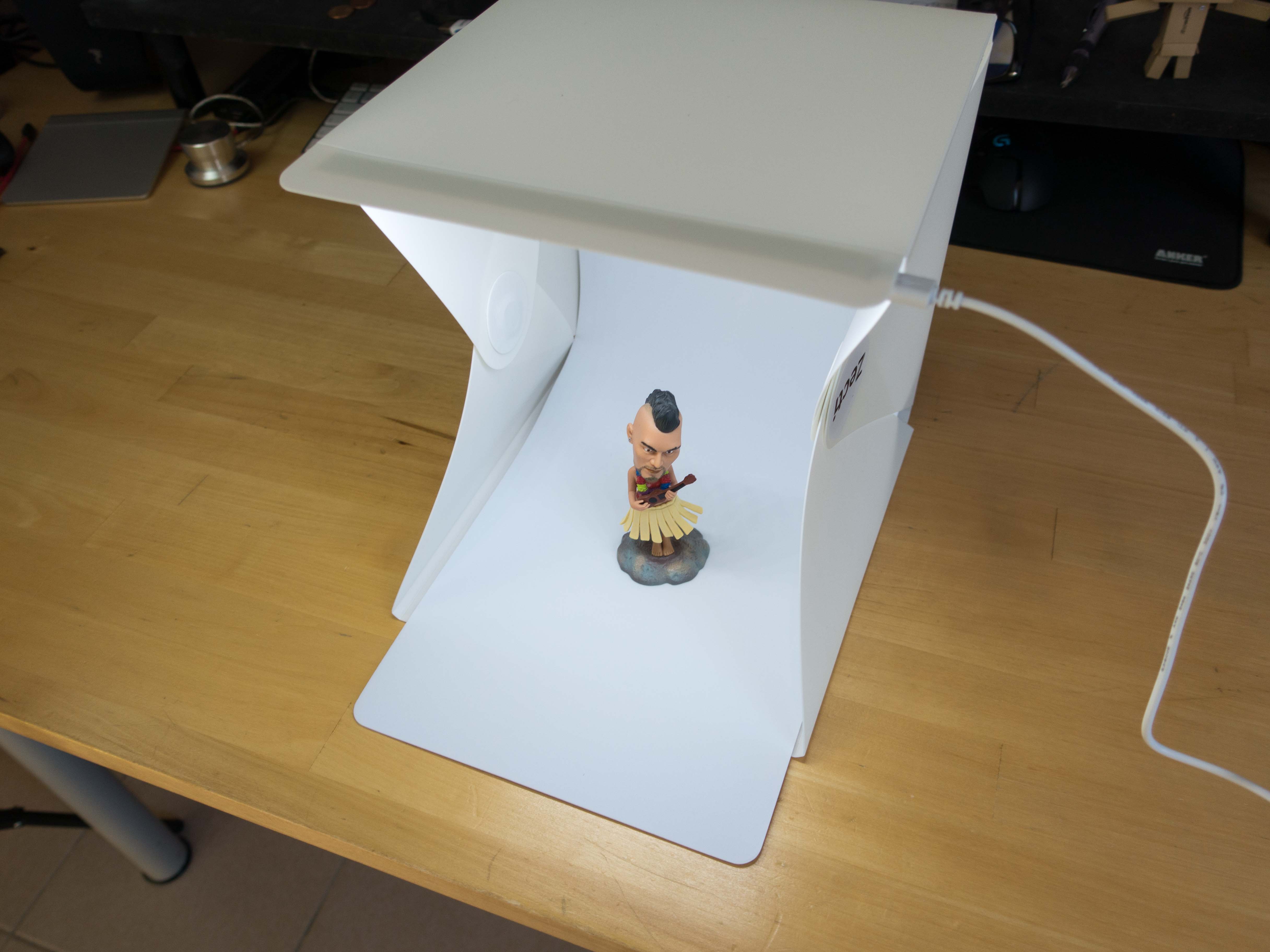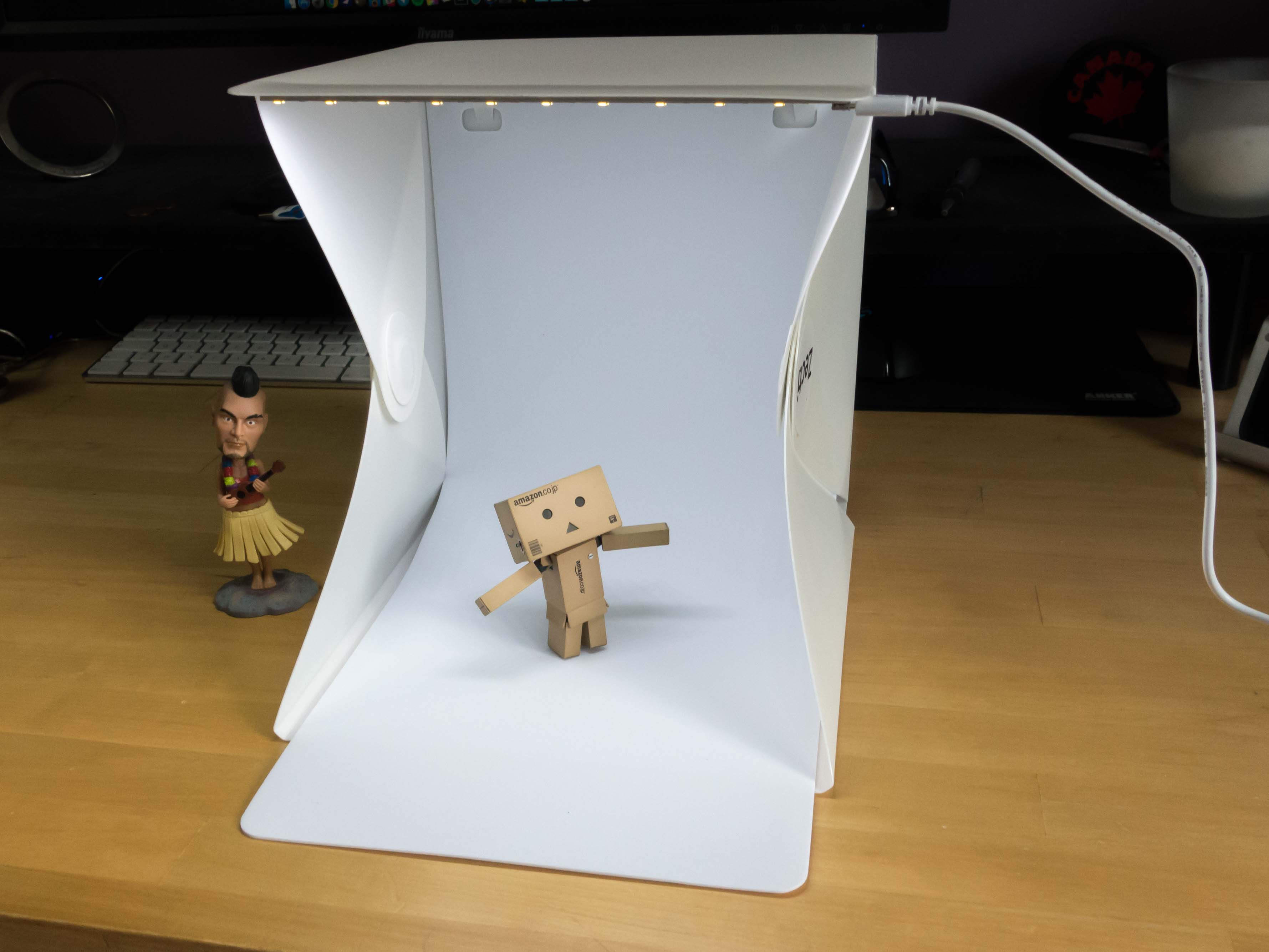 Ce studio photo de taille rikiki est destiné à prendre des belles photos d’objets (packshot) avec un fond neutre… C’est typiquement le genre d’accessoire qu’il faut avoir si vous aimez prendre en photo des figurines, bijoux, matériel high-tech, petits jouets ou tout autre création de taille raisonnable.