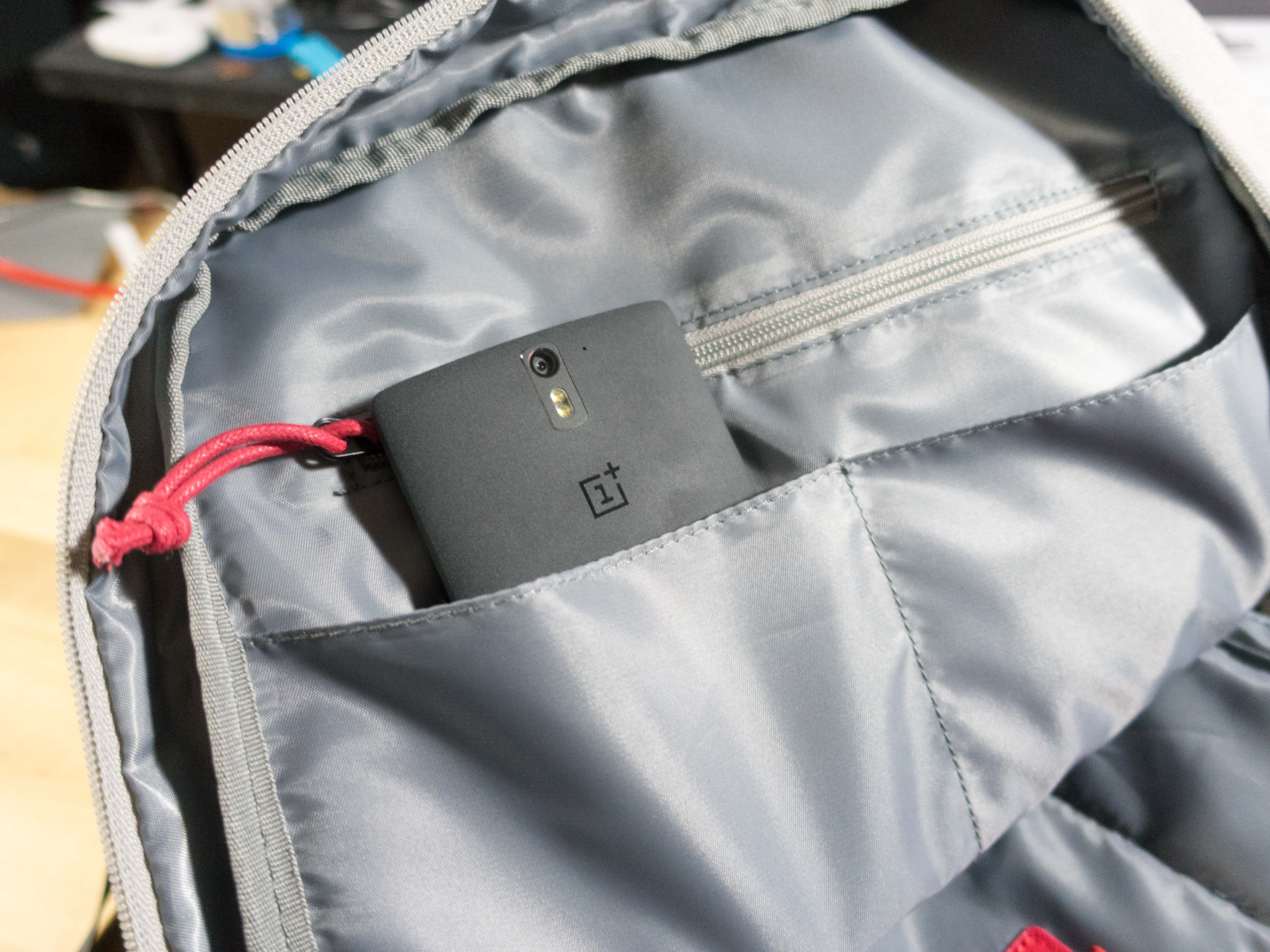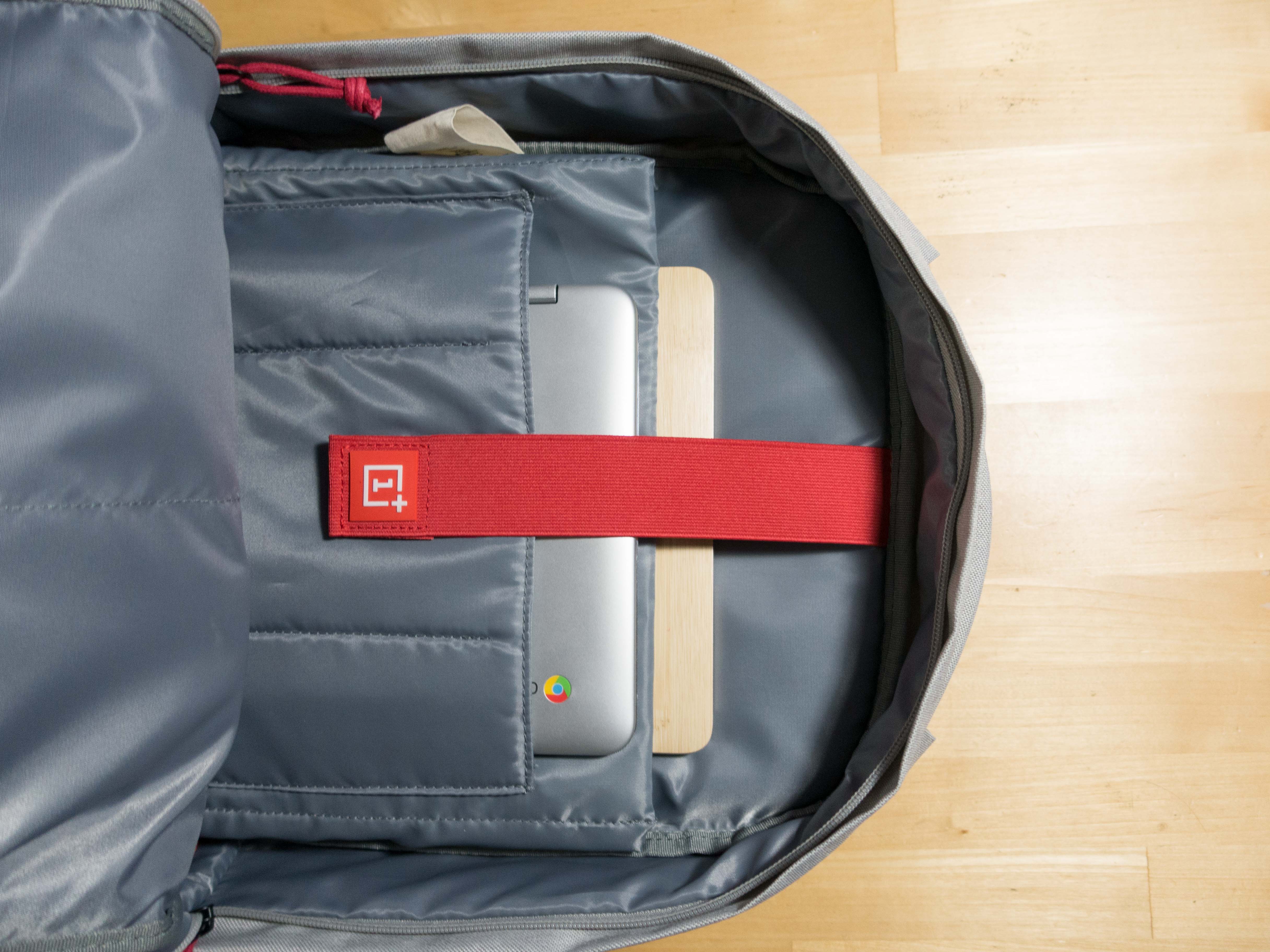Sur les photos ci-dessous, différentes configurations sont présentées, mais sachez que vous arriverez forcément à y ranger votre laptop et tablette sans aucun problème (sauf si vous avez un 17 pouces évidemment). À noter que l’ensemble du OnePlus Travel Backpack est entièrement doublé, avec un matériau satiné très agréable au toucher.