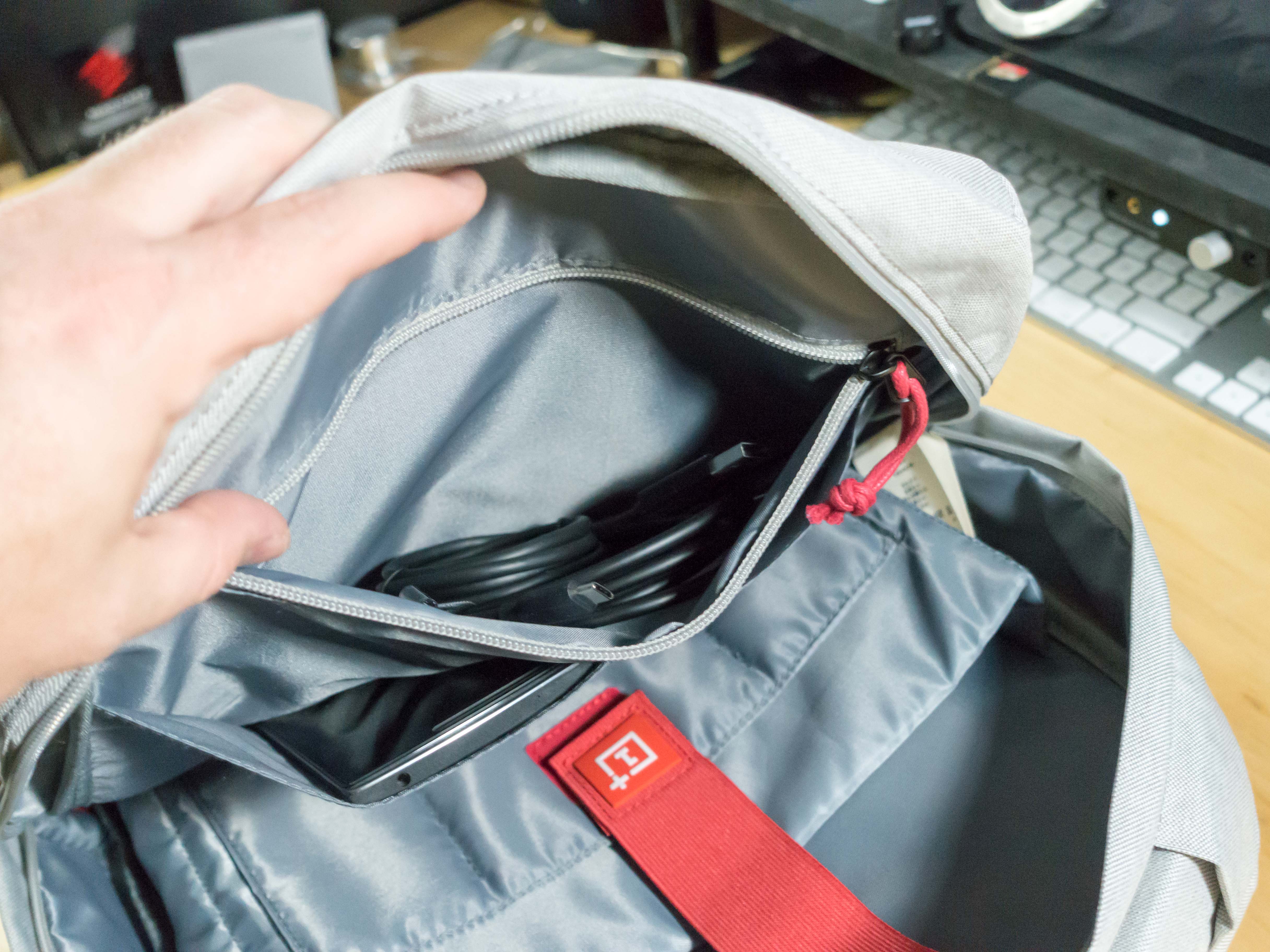 En bonus, et c’est plutôt malin de la part de OnePlus, il est possible de glisser le sac sur la poignée d’une valise classique !