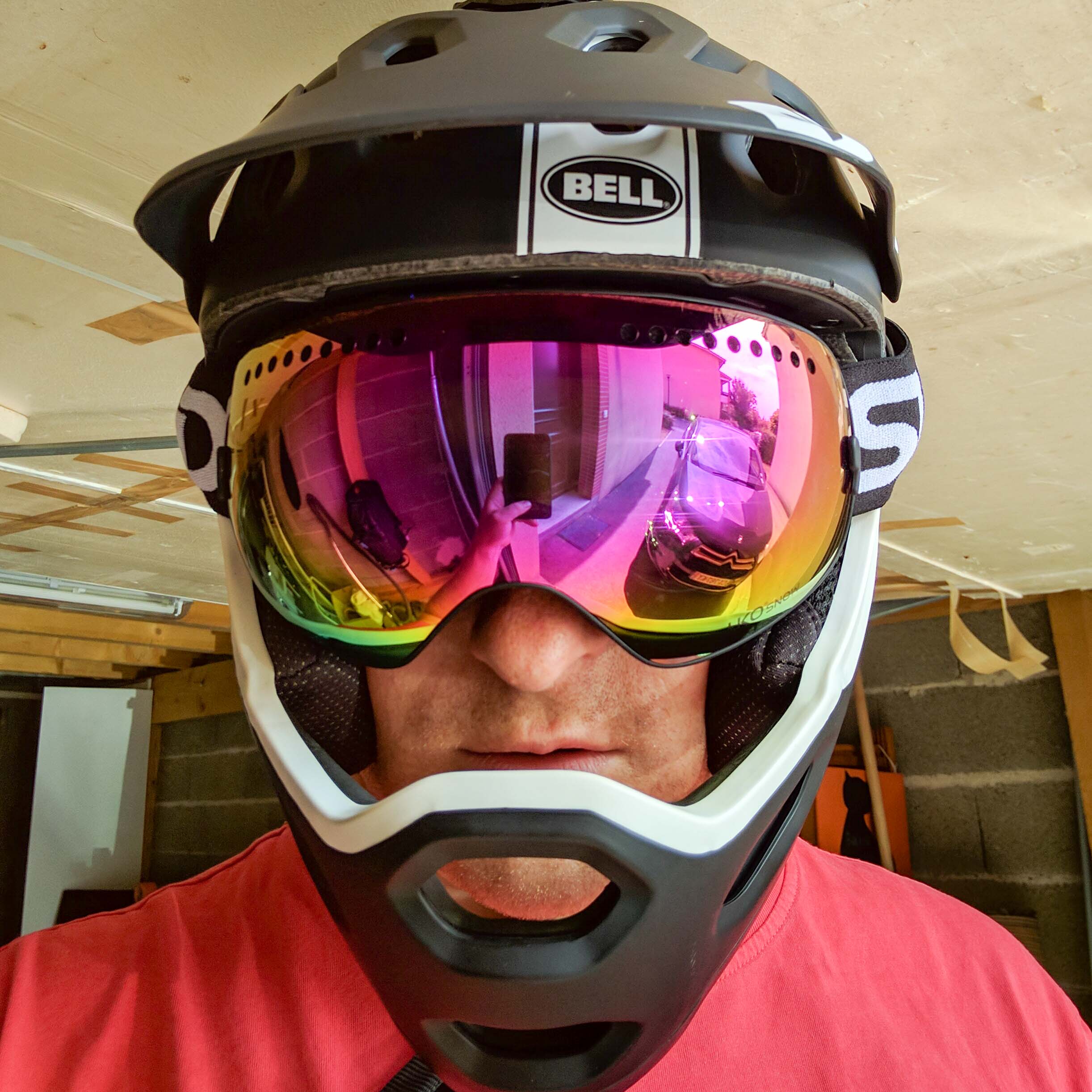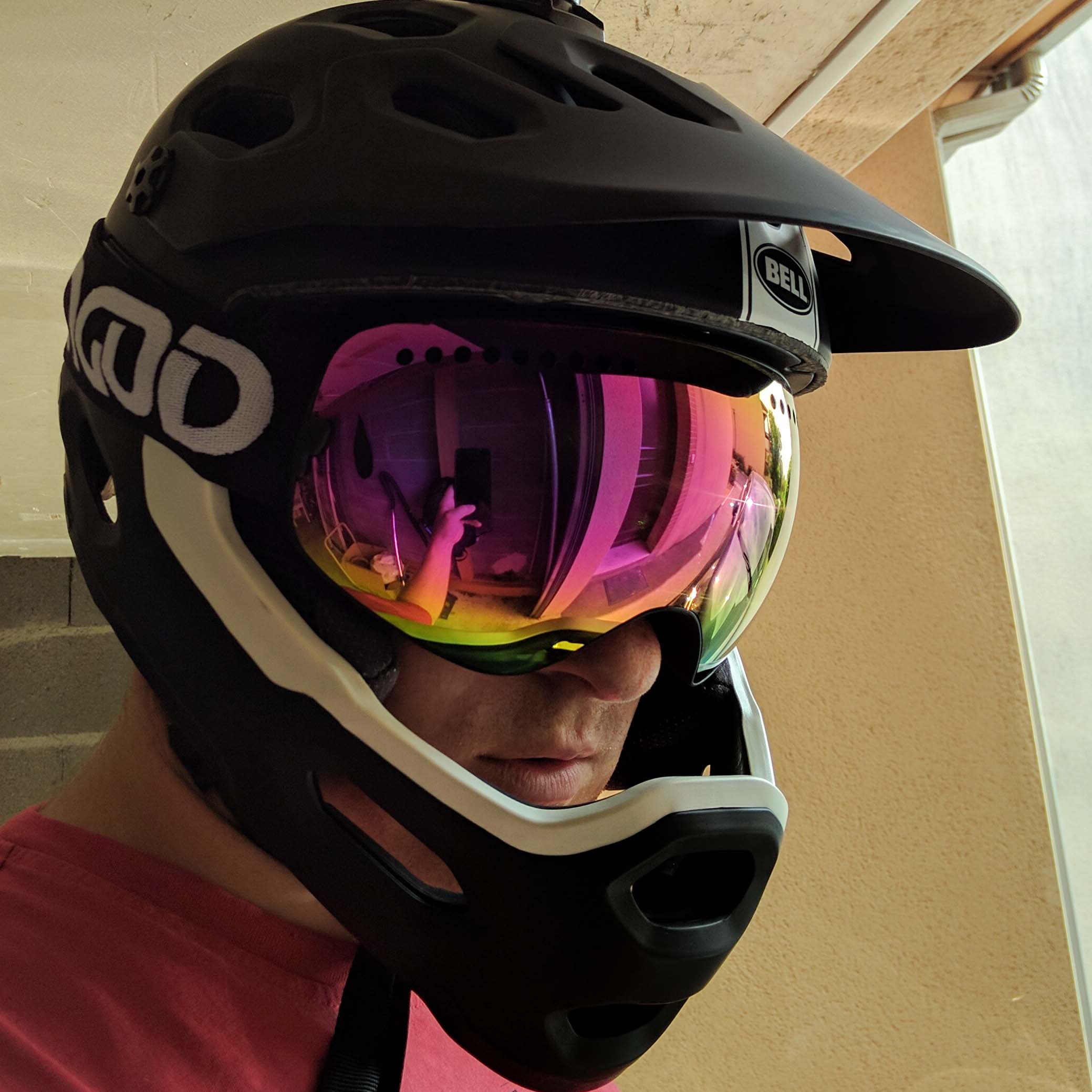- En point négatif, je n’ai pas grand chose à dire : sous certains angles de soleil (quand il arrive à 90° sur le coté) j’ai quelques reflets parasites dans la visière, mais vu la configuration sphérique de la chose, je pense que c’est assez difficile de ne pas en avoir.