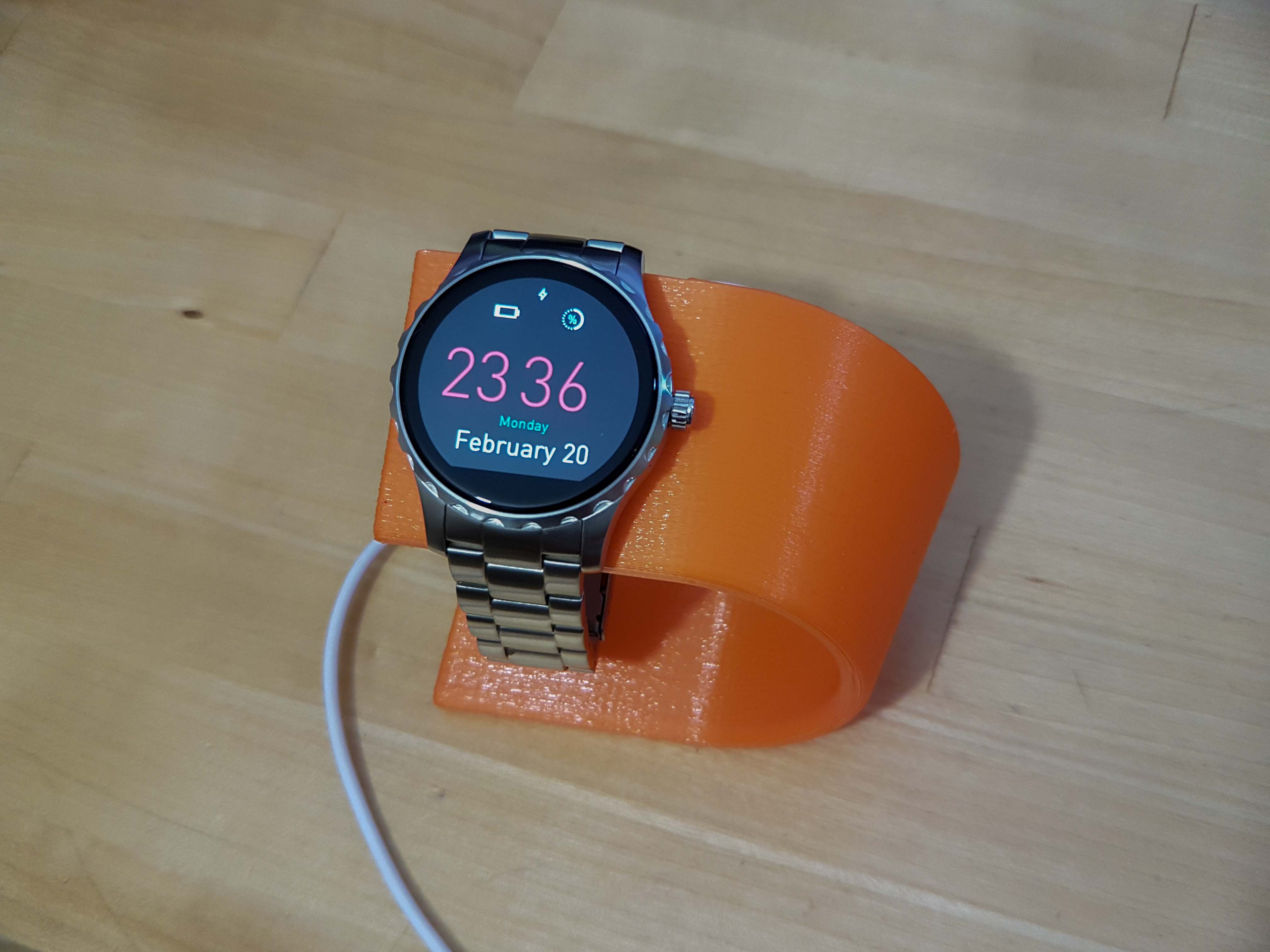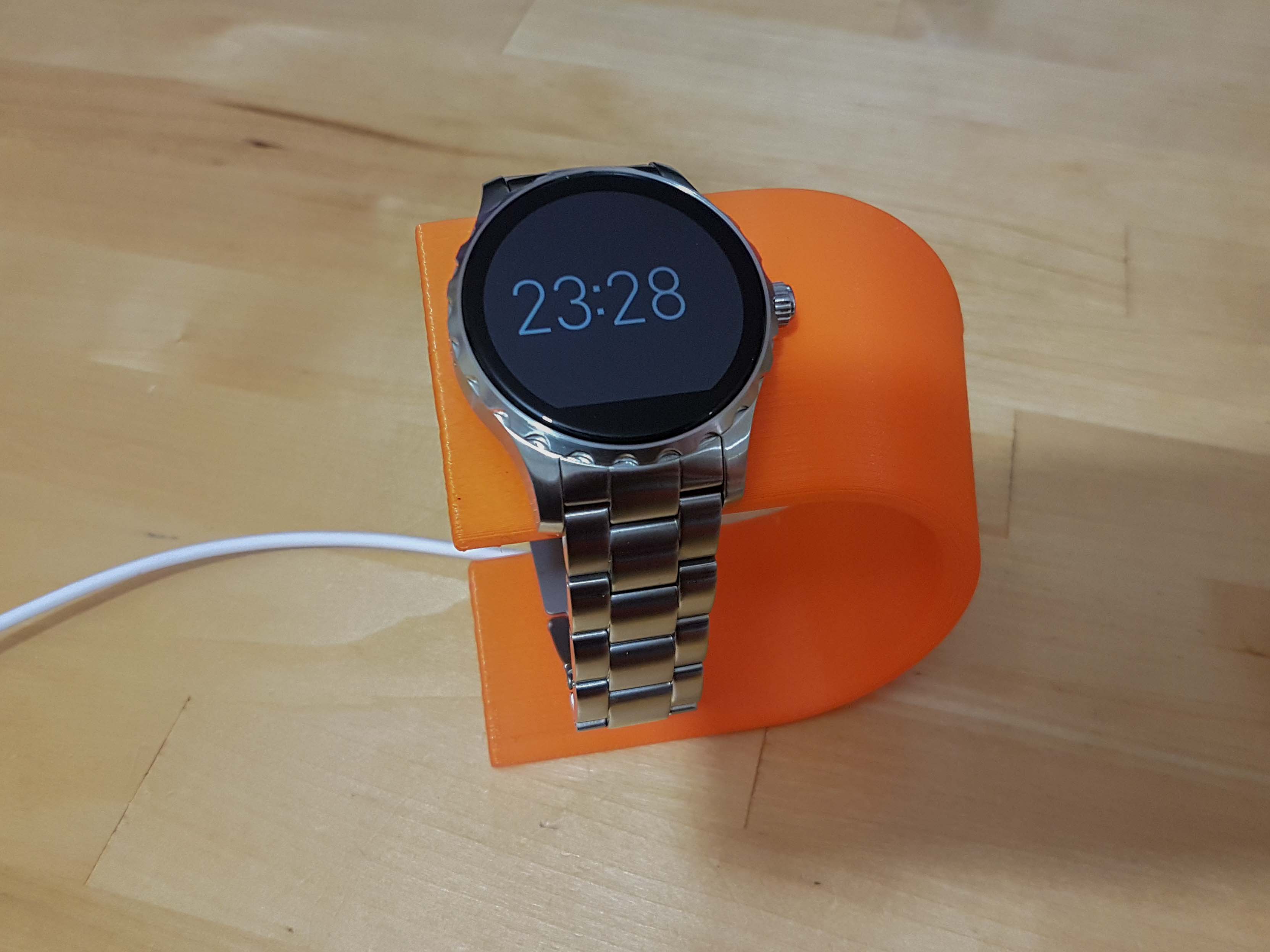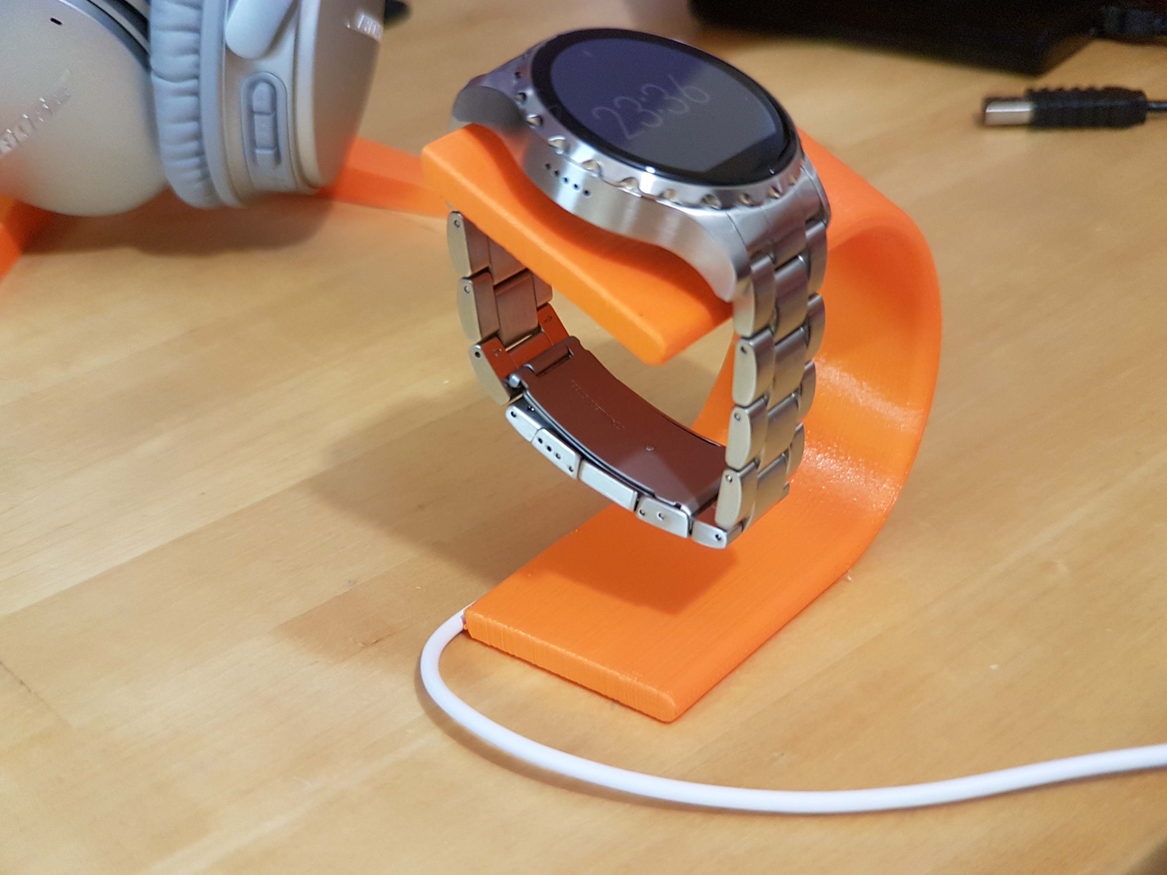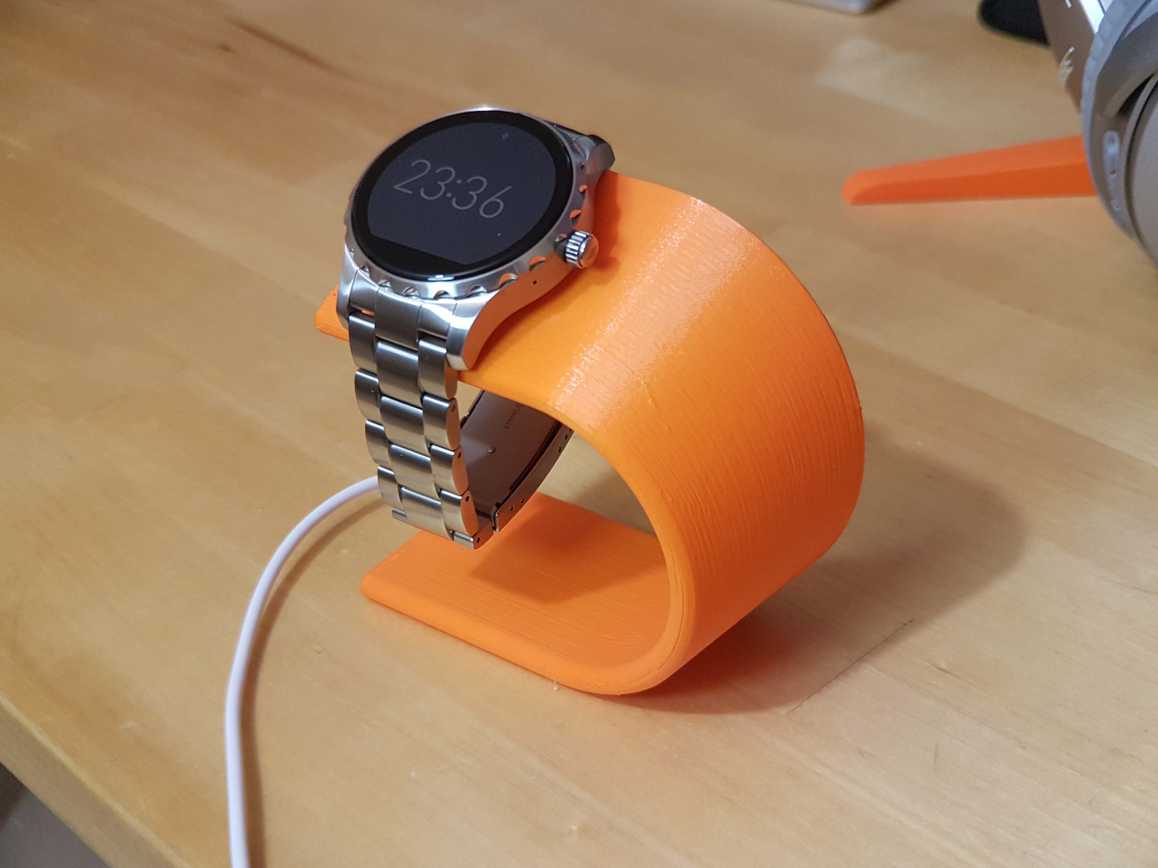 Petites remarques bonus : le bracelet est un 22mm et standard. L’affichage de la météo ne fonctionne pas chez moi (j’ai toujours 0° affichés). Je me suis fait un petit support pour charger la montre en 3D print ; je vous partage le lien du fichier 3D histoire de vois l’imprimer vous même !