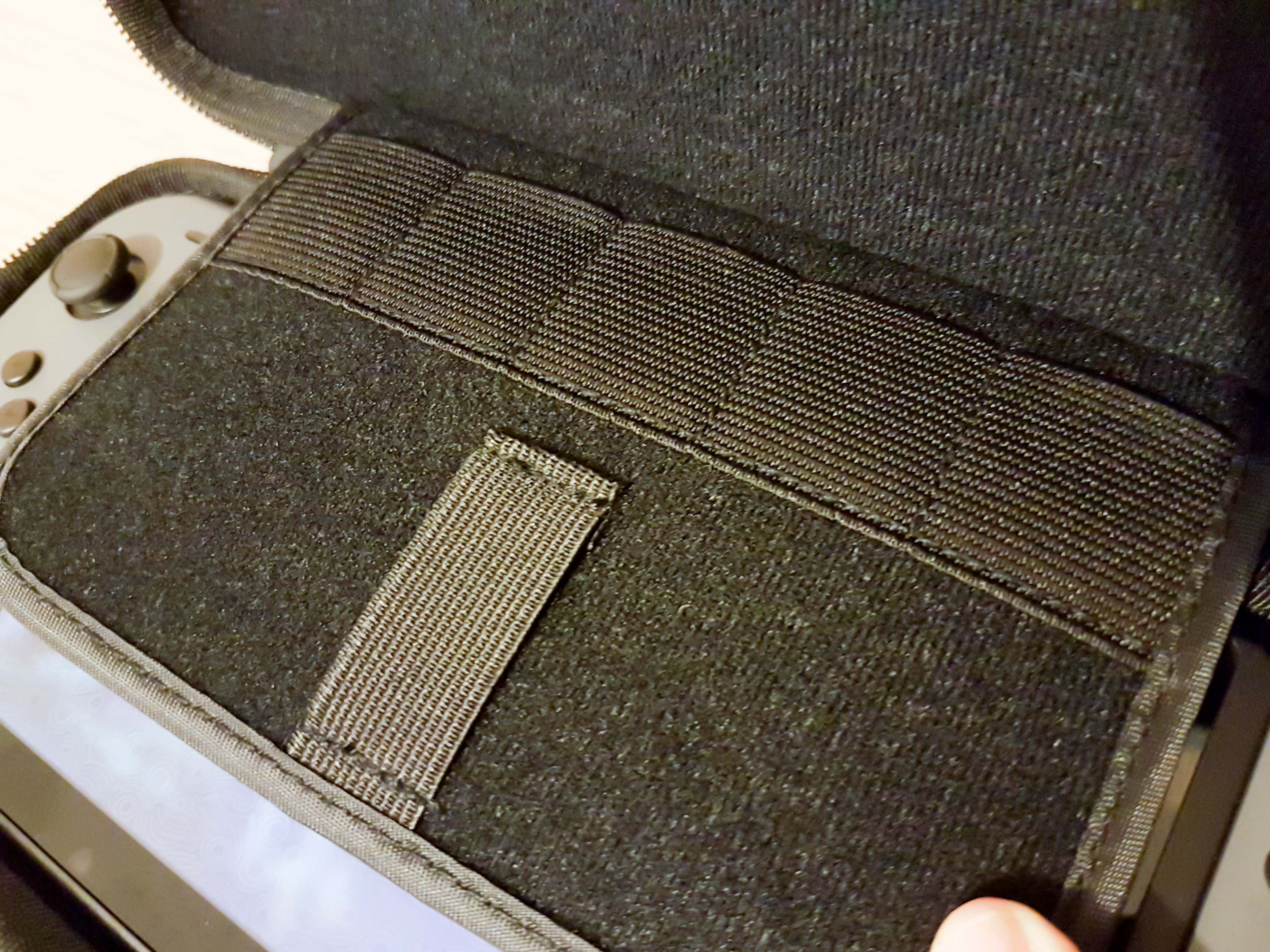 J’ai trouvé la qualité de fabrication de cette housse Hori pour Nintendo Switch était très bonne, voir excellente. Elle « fit » parfaitement autour de la console, permettant d’avoir finalement une housse vraiment limitée au niveau taille & épaisseur. La Switch est clairement bien calée à l’intérieur et ne pourra pas bouger latéralement (si vous n’avez pas d’accessoires, elle pourra un peu bouger).