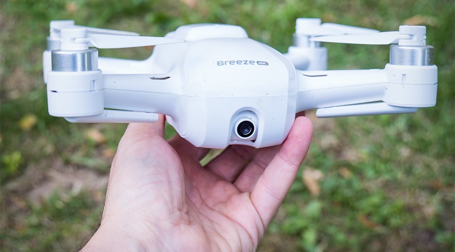 Pour présenter rapidement ce Yuneec Breeze, il s’agit d’un petit drone qui se pilote via le wifi de votre smartphone (portée limitée à 50 ou 100m) et qui possède un appareil photo orientable capable de filmer jusqu’au 4K 30fps.
