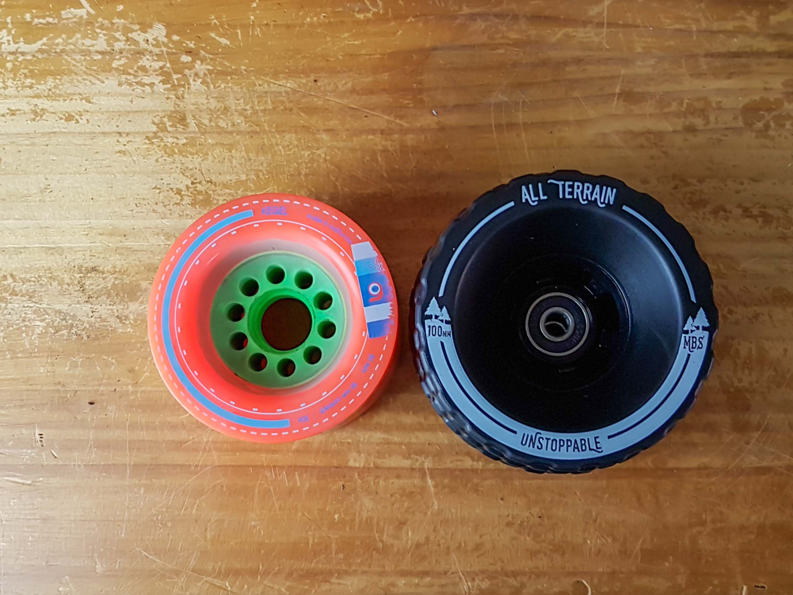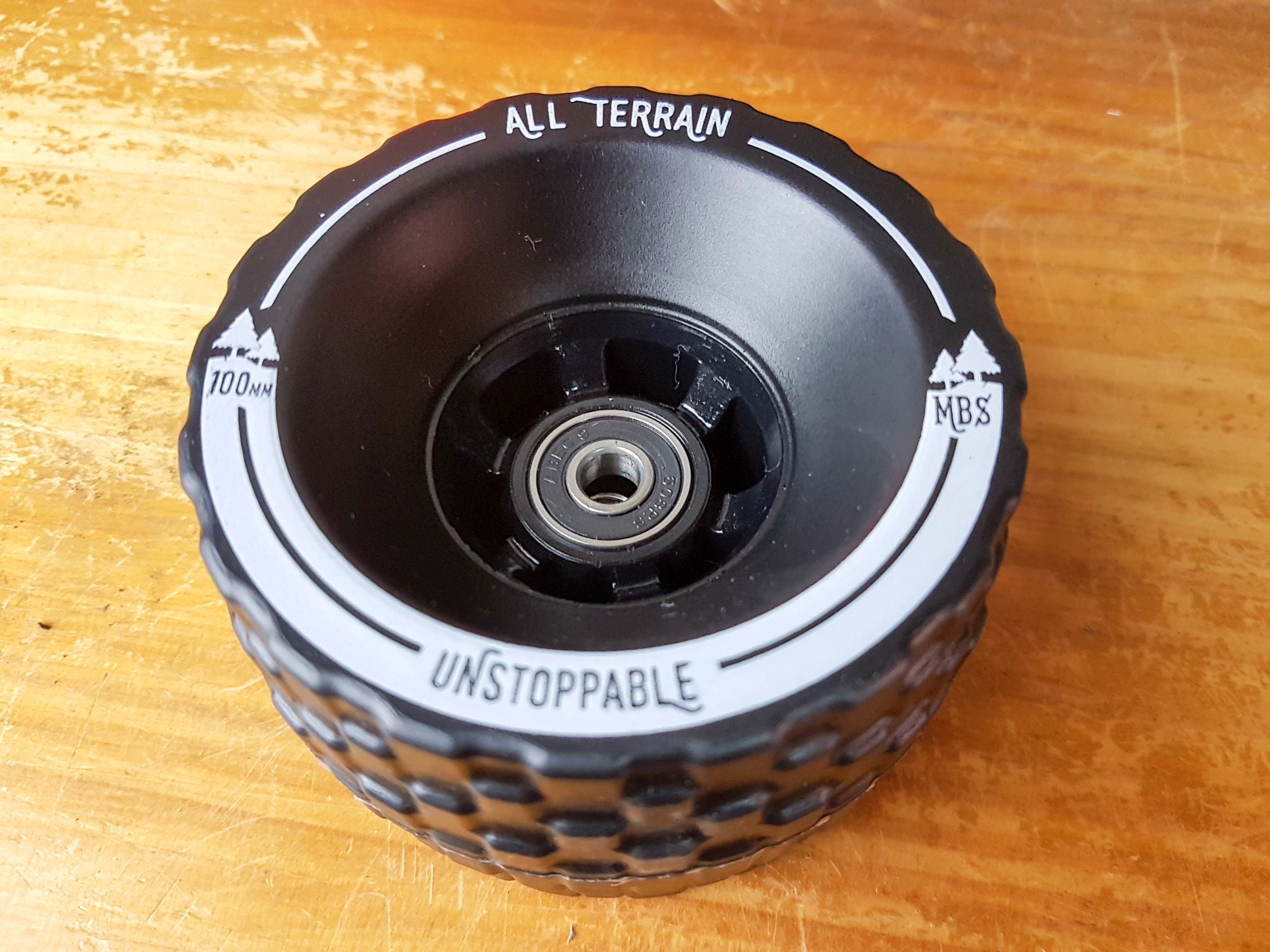Ces roues MBS all terrain sont assez particulières car elles ne sont pas lisses comme les roues en urethane, typique du skate… Elles ont une texture bien spécifique qui permet d’être qualifiée de « all terrain ».