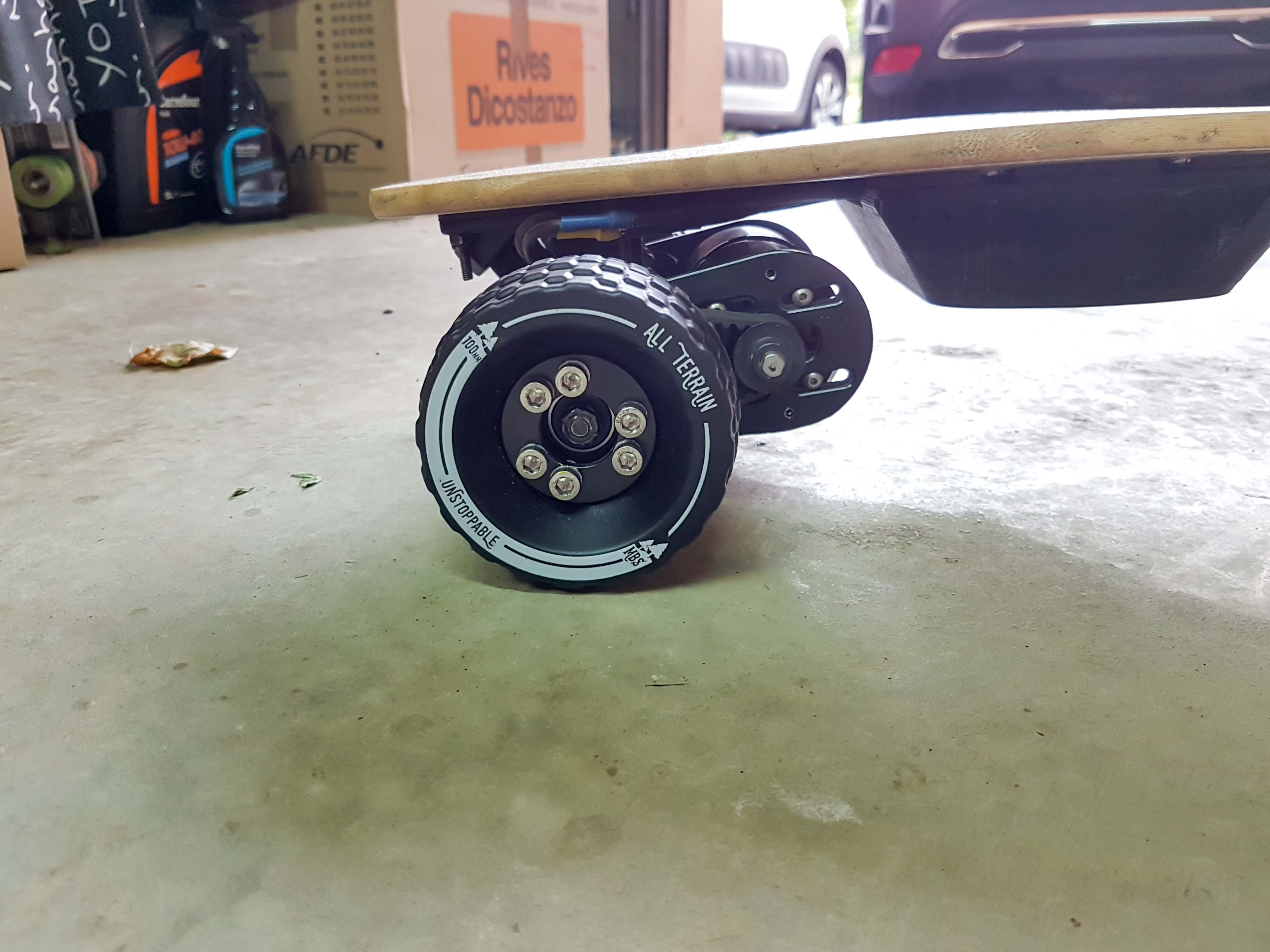 Au niveau look, je trouve que ces roues MBS all terrain ont vraiment de la gueule… ça donne un petit coté « musclé » à la board, qui était déjà pas mal…