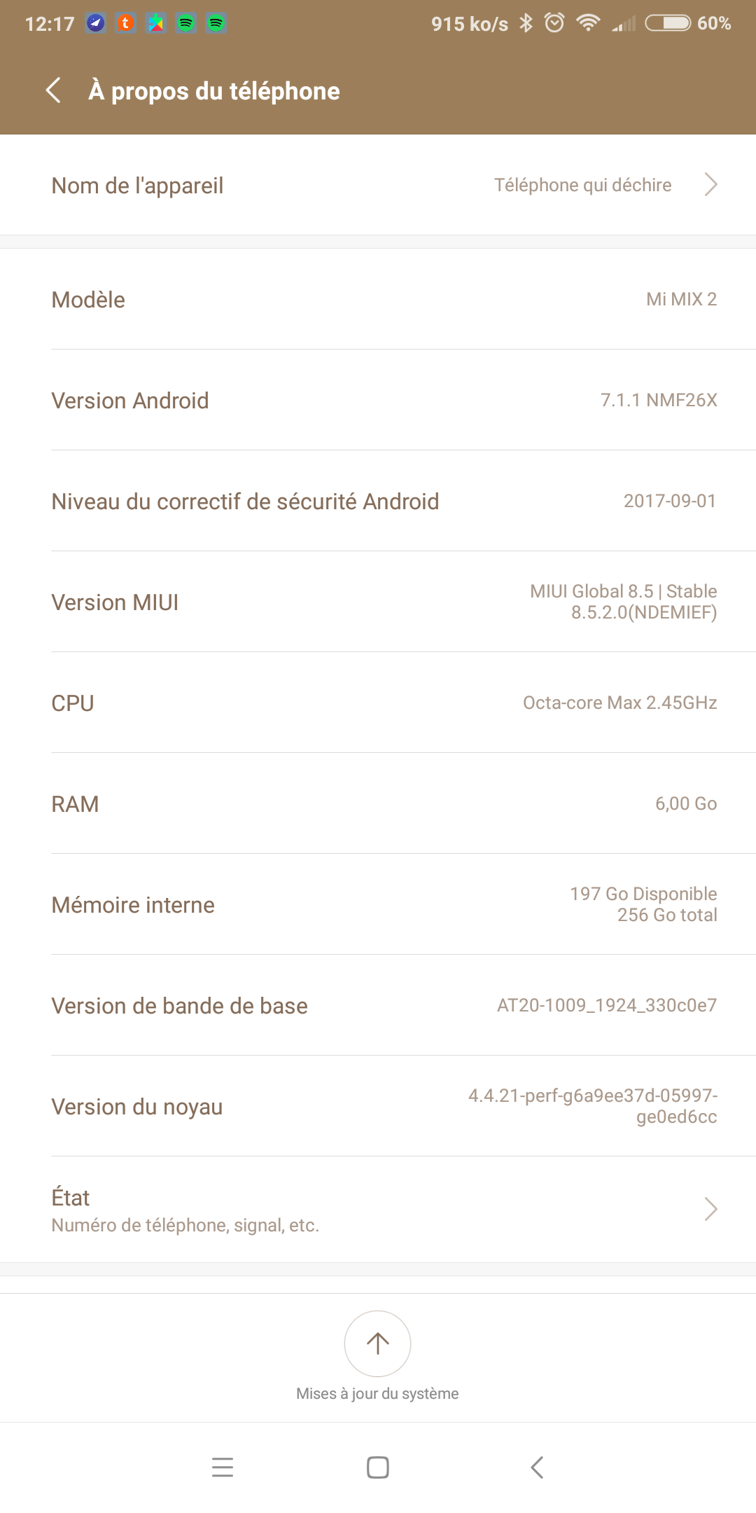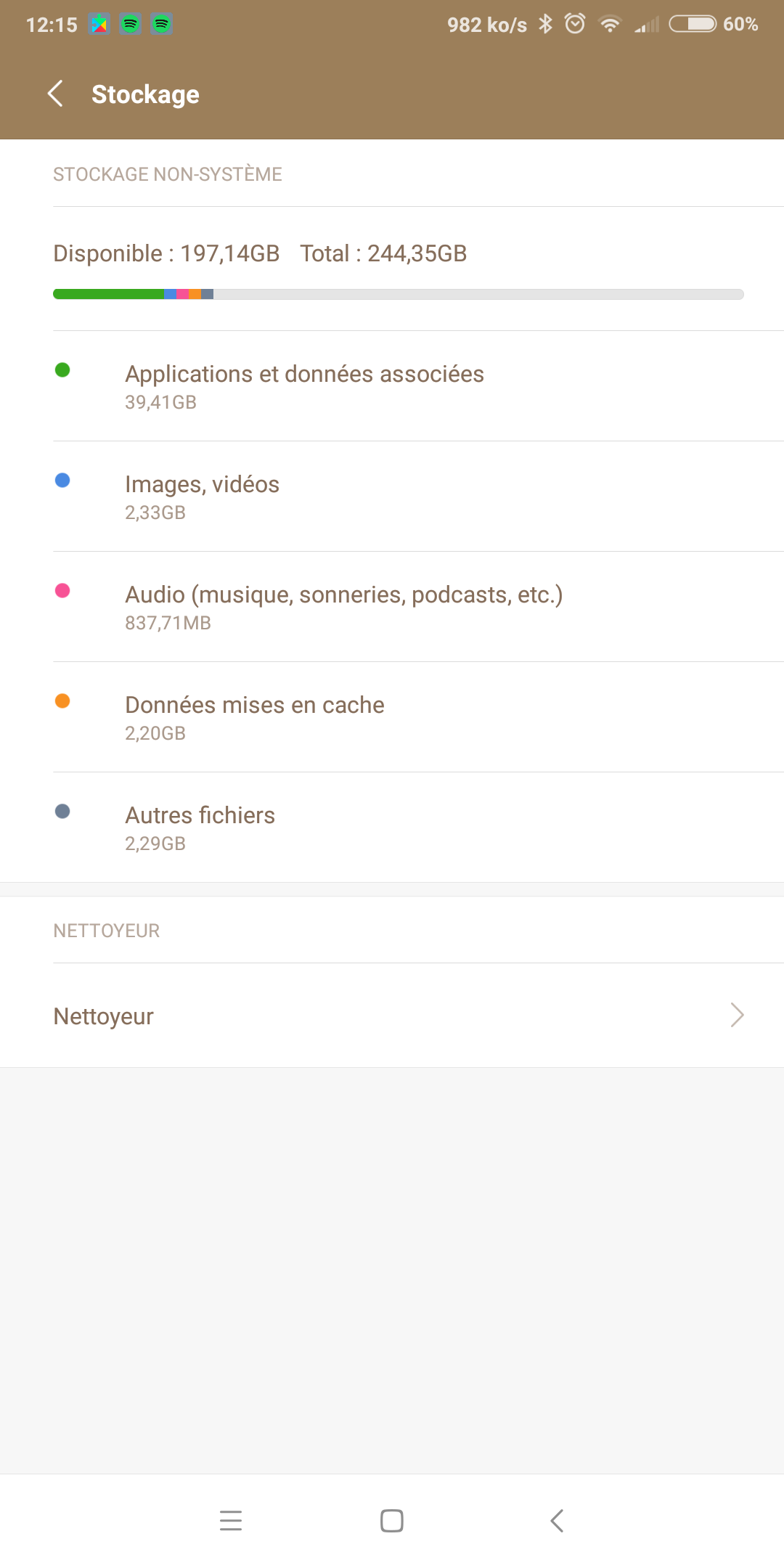Petit détail intéressant : mon Xiaomi Mi Mix 2 a 256 go de stockage, j’ai pris la version la plus « large » vu le faible écart de prix entre la version 64 et 256… Ca me laisse beaucoup de place pour stocker mes playlists Spotify, vidéos Netflix, podcasts, photos & vidéos en 4K 🙂