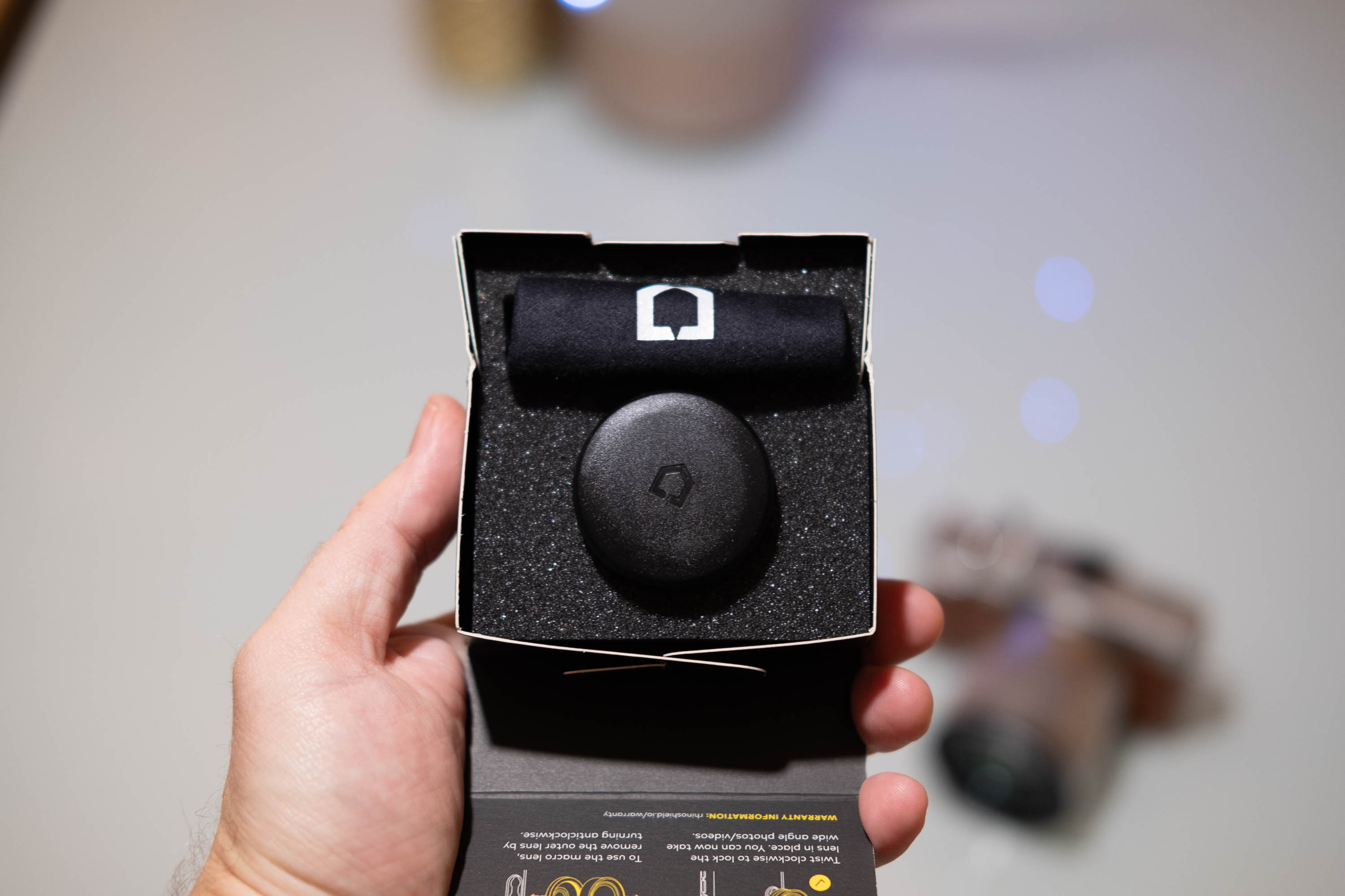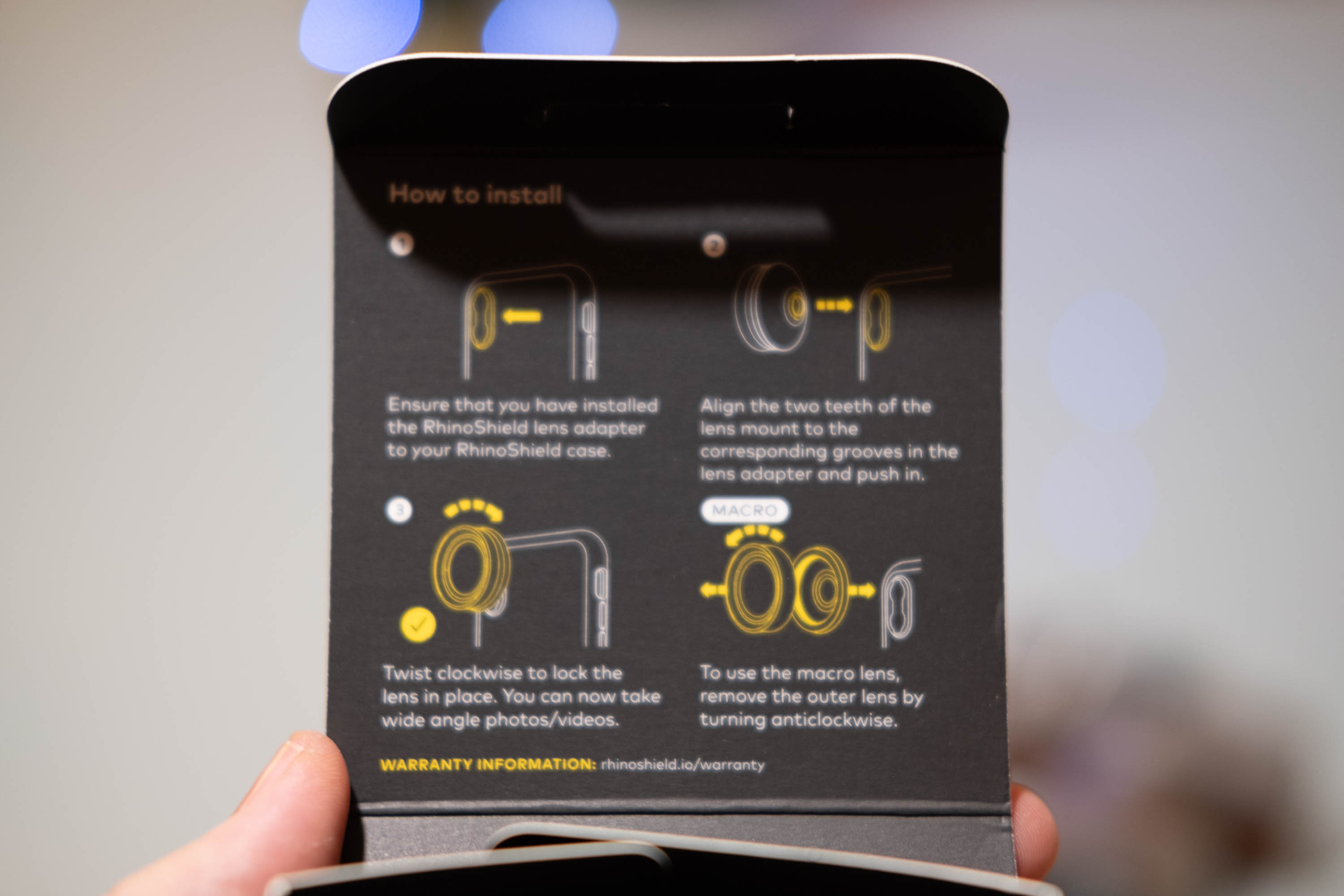 Cette année Rhinoshield a renouvelé son objectif 2 en 1, et propose un combo grand angle et macro appelé « HD 4K + Macro« . Comment cela fonctionne ? Et bien il faudra déjà posséder la coque SolidSuit (le bumper n’est pas compatible) et un petit embout métallique qui se glisse entre la coque et le smartphone (attention, cet embout doit être acheté séparément). Il permettra ensuite de fixer l’objectif photo.