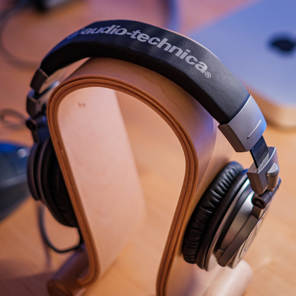 Passer sur un casque filaire donc…. C’est ce que j’ai fait, via un petit casque dont tout le monde parle depuis des années. Un casque Audio-Technica de monitoring, au rapport qualité / prix très bon, d’après les tests. Il s’agit du Audio-Technica ATH-M50X , qui se trouve régulièrement sur Amazon pour moins de 130 euros. Pour ce prix, on a un casque très confortable, livré avec boite de rangement, plusieurs fils et embouts et qui propose un son très clair et détaillé. Il n’est pas une référence coté neutralité, mais il se débrouille très bien pour le prix…